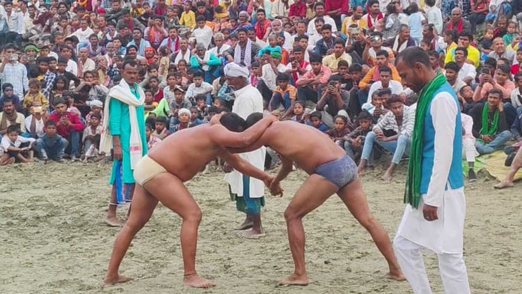 चौथम. प्रखंड क्षेत्र अंतर्गत रोहियार पंचायत के रोहियार शिव मंदिर प्रांगण में शुक्रवार से दो दिवसीय महादंगल शुरू हो गया, जिसका उदघाटन रोहियार पंचायत के पंचायत समिति प्रतिनिधि निकेश यादव ने किया. पंचायत समिति प्रतिनिधि ने कहा कि दो दिवसीय महादंगल का आयोजन किया गया है. शुक्रवार के दोपहर में कलश विसर्जन के साथ ही दो दिवसीय दंगल का आयोजन शुरू हो गया. दंगल के पहले दिन खगड़िया के रोहियार वासी दीपक पहलवान ने मध्यप्रदेश के भीम पहलवान को पटखनी दी. इसके अलावा रोहियार के ऋषि पहलवान ने बगहा के पहलवान को दी पटखनी दी. रोहियार के अमरेश पहलवान ने उत्तर प्रदेश के अमलेश पहलवान को दी पटखनी दी, जबकि रोहियार के दिगंबर पहलवान ने दिल्ली के विजय पहलवान को दी पटखनी दी. वहीं उत्तर प्रदेश के राधामोहन पहलवान ने उत्तर प्रदेश के गुड्डू पहलवान को पटखनी दी. रोहियार के बब्बी पहलवान ने बगहा के पिंटू पहलवान को, रोहियार के रौशन पहलवान ने चंपारण के शुभम पहलवान को पटखनी दी. मेला कमिटी के अध्यक्ष अनंत कुमार यादव ने कहा कि शनिवार के दोपहर दो बजे से महादंगल का रोमांचक मुकाबला होगा. जिसमें बड़े बड़े पहलवानों के बीच महादंगल का मुकाबला होगा. मौके पर मेला कमिटी के सचिव ऋतु राज उर्फ कापो यादव, कोषाध्यक्ष सुमरीत पासवान, सदस्य भरत यादव, दिलीप रजक, शंभू यादव, दीपक भगत, ज्ञानदेव साह, बिक्की वर्मा, इंदल यादव, भूषण यादव, वैद्यनाथ पासवान, शंकर रजक, रवि पासवान, इंदल साह, सुरेंद्र यादव आदि मौजूद थे.