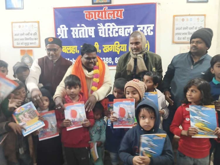 मानसी. छोटी बलहा में संतोष चैरिटेबल ट्रस्ट ने बच्चों के बीच पठन सामग्री का वितरण किया. ट्रस्ट के संस्थापक अध्यक्ष संतोष कुमार के जन्मदिन पर कार्यक्रम का आयोजन कर बच्चों के बीच पाठय सामग्री का वितरण किया गया. कार्यक्रम में अध्यक्ष संतोष को मुख्य अतिथि भाजपा नेता राजाराम सिंह ने पुष्पमाला पहनाकर और विशिष्ट अतिथि नवजागृति संस्था के मृत्युंजय कुमार ने अंगवस्त्र देकर सम्मानित किया. मौके पर ग्रामीण अनिल साह, उपेंद्र साह, ग्रामीण चिकित्सक सुनील कुमार, प्रियकांत पंकज, अयांश राज, ललिता देवी आदि मौजूद थे.