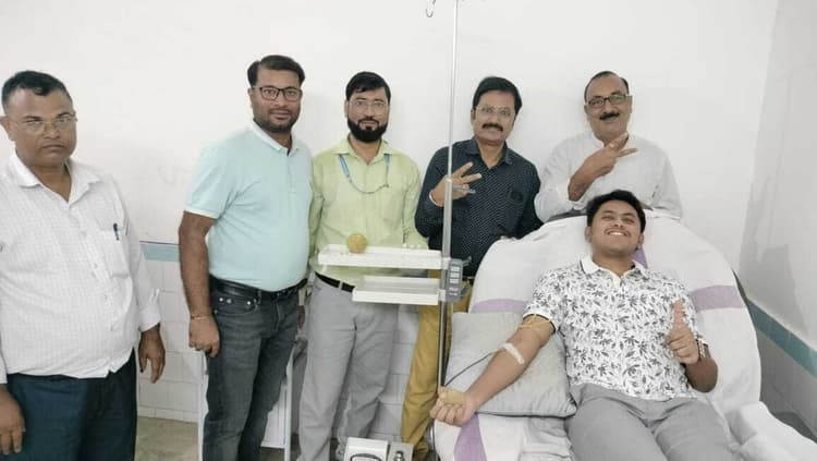 खगड़िया. ह्यूमैनिटी ब्लड डोनेशन के बैनर तले डॉ कुमार गौरव ने ब्लड डोनेट किया. बुधवार को सदर अस्पताल स्थित ब्लड बैंक में डॉ कुमार गौरव ने ब्लड डोनेट किया. बताया जाता है कि डॉ एच प्रसाद के पुत्र ने जन्मोत्सव के अवसर पर ब्लड डोनेट किया. मौके पर ह्यूमैनिटी ब्लड डोनेशन ट्रस्ट के अध्यक्ष डॉ जैनेंद्र नाहर, सचिव नवीन गोयंका, डॉ एच प्रसाद के उपस्थित में डॉ. कुमार गौरव ने ब्लड डोनेट किया.