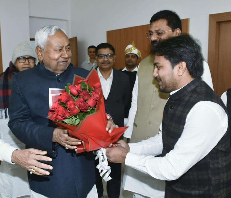 मुख्यमंत्री से मिले नेक्टर के निदेशक डॉ नीतीश कुमार खगड़िया. नेक्टर के निदेशक डॉ नीतीश कुमार सोमवार को मुख्यमंत्री नीतीश कुमार से मिलकर उनके स्वास्थ्य व दीर्घायु होने की कामना की. डॉ नीतीश कुमार ने मुख्यमंत्री को बुके भेंट कर आशीर्वाद लिया. डॉ नीतीश ने बताया कि मुख्यमंत्री से आवास पर मिलने का सौभाग्य प्राप्त हुआ. उनसे संवाद करना मानो किसी जीवंत विश्वकोश से बात करने जैसा अनुभव था. बिहार के मुद्दों पर उनकी गहरी समझ, दूरदृष्टि और विकास के प्रति प्रतिबद्धता वास्तव में प्रेरणादायक है. 2005 से पहले की अंधकारमय परिस्थितियों से बिहार को बाहर निकालने में उनका नेतृत्व निर्णायक रहा. पिछले दो दशक से बिहार को स्थिरता, शासन-व्यवस्था और विकास की राह पर ले जाने में उनकी भूमिका अद्वितीय रही है. 2025 के विधानसभा चुनावों में भी उनका नेतृत्व सबके सामने एक मिसाल बनकर उभरा है. उन्होंने कहा कि एक कार्यकर्ता के रूप में मुझे गर्व है कि मैं उसी पार्टी का हिस्सा हूं. जिसके वे प्रथम सदस्य हैं.