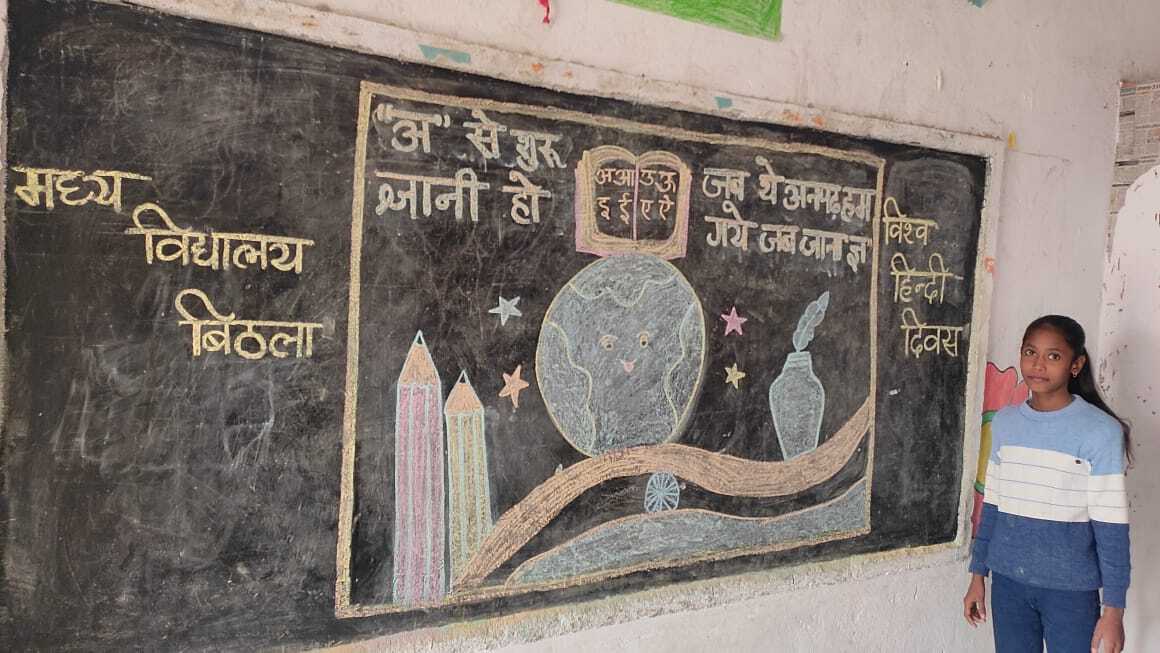 परबत्ता. प्रखंड अंतर्गत मध्य विद्यालय बिठला में विश्व हिंदी दिवस के अवसर पर कार्यक्रम आयोजित किया गया. इस दौरान छात्र-छात्राओं के बीच हिंदी व हिंदी दिवस के महत्व को बताया गया. विश्व हिंदी दिवस 2025 की थीम एकता और संस्कृति गौरव की वैश्विक आवाज को चित्रकारी के द्वारा प्रस्तुत किया गया. शिक्षकों ने बताया कि यह थीम अंतरराष्ट्रीय संचार और सांस्कृतिक आदान-प्रदान के माध्यम के रूप में हिंदी के महत्व पर जोर देता है. वैश्विक मंचों पर इसके उपयोग को प्रोत्साहित करता है. मौके पर रितिका कुमारी, प्रिया भारती, काजल कुमारी, प्रतीक्षा कुमारी ने सुंदर लिखावट व मनमोहक चित्रकला के जरिये कार्यक्रम को खुशनुमा बना दिया. इस दौरान शिक्षक आशुतोष कुमार, मो रियाजुद्दीन, सज्जन कुमार, कपिल देव प्रसाद चौरसिया, गीतांजलि कुमारी, नंदिनी रानी़, सितारा खातून, सिंधु कुमारी, उषा कुमारी आदि सभी शिक्षक मौजूद रहे.