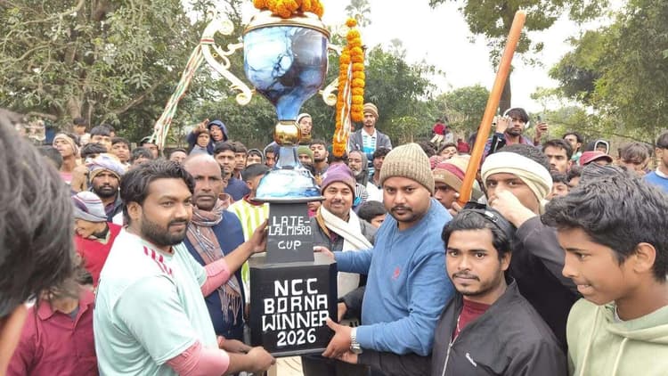 गोगरी. प्रखंड क्षेत्र के खेल मैदान में चल रहे क्रिकेट टूर्नामेंट का फाईनल मैच रविवार को एनसीसी बोरना और बेलदौर के बीच खेला गया. मैच का उद्घाटन बौरना के मुखिया प्रतिनिधि मो. नासिर इकबाल ने सभी खिलाड़ी से परिचय प्राप्त कर की. जिसमें बेलदौर की टीम टॉस जीत कर पहले गेंदबाजी का फैसला किया. निर्धारित 16 ओवर के मैच में बोरना की टीम 10 विकेट खोकर 15.3 ओवर में 153 रन पर ऑल आउट हो गई. वहीं जवाबी पारी खेलने उतरी बेलदौर की टीम ने 14 ओवर में 131 रन बना कर ऑल आउट हो गयी. इस तरह से बोरना की टीम 23 रनों से मैच जीत गई. बोरना की टीम के तरफ से 14 ओवर में मात्र 131 रन एवं 5 विकेट लेकर मैंन ऑफ द मैच कृष्णा कुमार बने. जबकि अंपायरों मो इरशाद एवं मो संजर, कमेंट्री मो साजिद ने महत्वपूर्ण योगदान किया. मौके पर मुखिया प्रतिनिधि मो नासिर इकबाल ने कहा के क्रिकेट खेलने से हृदय स्वास्थ्य में सुधार, वजन नियंत्रण, मजबूत मांसपेशियां और तेज एकाग्रता जैसे शारीरिक व मानसिक लाभ मिलते हैं. यह टीम भावना और अनुशासन और तनाव कम करने में भी मदद करता है. प्रति घंटे लगभग 290 कैलोरी बर्न करने में सक्षम यह एक बेहतरीन फुल-बॉडी वर्कआउट है. मौके पर बोरना टीम के कप्तान मो साजिद, बीरेंद्र पटेल, फैयाज अहमद, सहित दर्जनों लोग मौजूद रहे.