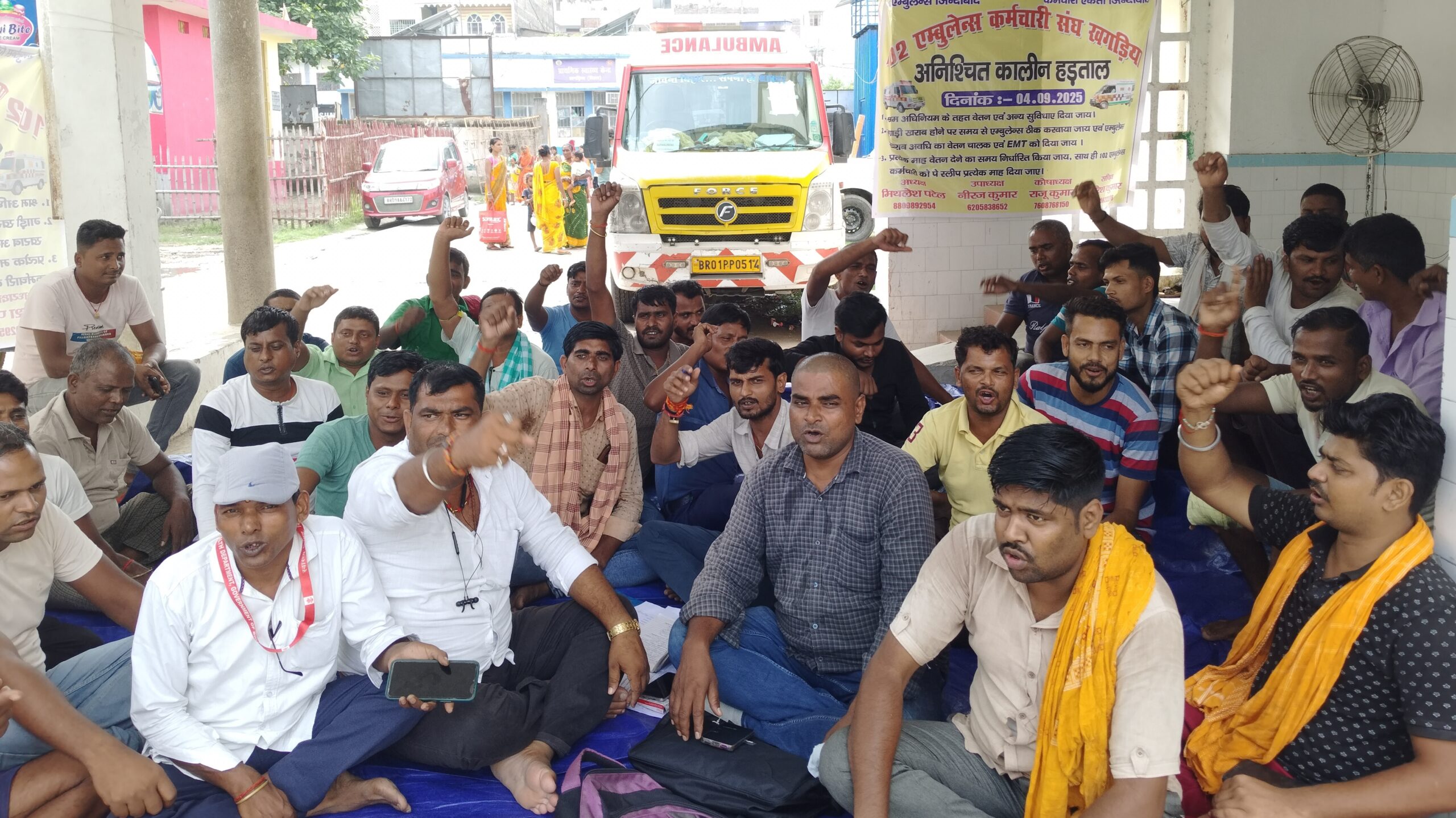 खगड़िया. पुराना सदर अस्पताल परिसर में बीते 10 दिनों से 102 एंबुलेंस कर्मचारी संघ ने तीन सूत्री मांगों को लेकर अनिश्चितकालीन हड़ताल पर हैं. एंबुलेंस कर्मियों के हड़ताल पर रहने के कारण मरीजों को काफी परेशानी का सामना करना पड़ रहा है. इस दौरान कर्मचारियों ने सरकार व स्वास्थ विभाग के विरोध में जमकर नारेबाजी की. शुक्रवार को 102 एंबुलेंस कर्मचारी संघ के अध्यक्ष मिथलेश कुमार पटेल ने कहा कि बीते 10 दिनों से अनिश्चितकाली हड़ताल पर हैं. अब तक स्वास्थ्य विभाग के कोई भी अधिकारी सूधी लेने नहीं आया है. जब तक मांगे पूरी नहीं होती है तब तक एंबुलेंस कर्मी हड़ताल पर ही रहेंगे. बताया कि जिले के 102 चालक व एमटी तीन सूत्री मांगों लेकर अनिश्चितकालीन हड़ताल हैं. बताया कि 23 बड़े व छोटे एंबुलेंस की सेवा ठप है. संघ के अध्यक्ष ने कहा कि तीन मांगों में श्रम अधिनियम के तहत वेतन, एंबुलेंस खराब होने पर समय पर ठीक करवाने व गाड़ी खराब की अवधि का वेतन ईमटी एवं चालक को देने, प्रत्येक माह वेतन देने का समय निर्धारित व वेतन पर्ची दिया जाय. मौके पर एंबुलेंस कर्मी नवीन मंडल, महेश रजक, मोहन यादव, अजय कुमार, मनीष कुमार, दशरथ चौरसिया, मिथुन कुमार, रोशन श्रीवास्तव, हरीओम सुदर्शन, रमेश कुमार, विकास कुमार, रूपेश कुमार,मुन्ना कुमार, अमन कुमार, अवध बिहारी सहित दर्जनों कर्मचारी धरना में शामिल थे.