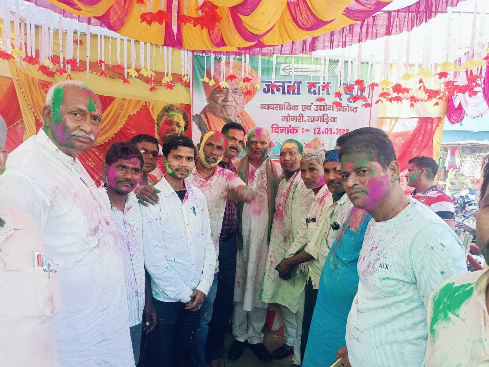 गोगरी. जनता दल यूनाइटेड की ओर से गोगरी बाजार स्थित डॉक्टर रवि कुमार निवास स्थान पर होली मिलन समारोह का आयोजन किया गया. समारोह में भाग ले रहे मुख्य अतिथि परबत्ता विधानसभा प्रभारी पप्पू सिंह निषाद, सुल्तानगंज विधानसभा प्रभारी पंकज पटेल, जिलाध्यक्ष बबलू मंडल ने कार्यकर्ताओं को अबीर गुलाल लगाकर व एक-दूसरे से गले मिले. कीर्तन भजन गायक कलाकारों ने फगुआ जोगीरा सा रा रा रा खूब गाया. मौके पर प्रखंड प्रभारी अनिल पोद्दार, प्रखंड अध्यक्ष गोगरी मायाराम मंडल, प्रखंड अध्यक्ष परबत्ता सुबोध साह, जदयू मीडिया प्रभारी रितेश कुमार, जिला उपाध्यक्ष उमेश सिंह पटेल, एससी एसटी के प्रदेश सचिव धनिक लाल दास, नगर अध्यक्ष इम्तियाज खान, रवि कुमार, मुखिया प्रतिनिधि जनार्दन पटेल, बॉबी गांधी, मनोज पटेल, श्रवन अग्रवाल, शिवनारायण पंडित, मनोज पासवान सुबोध गुप्ता, रविंदर कुमार आदि उपस्थित थे.