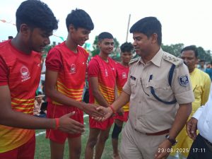 बालक व बालिका वर्ग में दव पब्लिक स्कूल ने ट्रॉफी जीतकर लहराया परचम डीएसपी ने विजेता वह विजेता टीम को दिया ट्रॉफी फाइव स्टार सोशल एंड स्पोर्ट्स क्लब के द्वारा किया गया आयोजन गोगरी. राष्ट्रीय खेल दिवस के अवसर पर स्थानीय भगवान इंटर विद्यालय के मैदान में कबड्डी प्रतियोगिता का आयोजन किया गया. प्रतियोगिता बालक व बालिका दोनों वर्ग में आयोजित हुआ. प्रतियोगिता का शुभारंभ गोगरी डीएसपी रमेश कुमार ने फीता काटकर किया. शुभारंभ के बाद डीएसपी ने टीम के खिलाड़ियों से परिचय भी लिया. शुक्रवार को राष्ट्रीय खेल दिवस के अवसर पर आयोजित कबड्डी प्रतियोगिता में बालक वर्ग के फाइनल मुकाबले में डीएवी पब्लिक स्कूल महेशखूंट ने एमएसआर सैनिक स्कूल मदारपुर को रोमांचक मुकाबले में 63-36 अंक से हराकर ट्रॉफी पर कब्जा जमाया. वहीं बालिका वर्ग के फाइनल मुकाबले में डीएवी पब्लिक स्कूल महेशखूंट ने पीएल शिक्षा निकेतन गोगरी को एक तरफा मुकाबले में 61-8 से हराकर ट्रॉफी पर कब्जा जमाया. बालक वर्ग में एमएसआर सैनिक स्कूल के शिवम कुमार को प्लेयर ऑफ द टूर्नामेंट घोषित किया गया. वहीं बालिका वर्ग में डीएवी पब्लिक स्कूल महेशखूंट की छात्रा श्रेया रानी को प्लेयर ऑफ़ द टूर्नामेंट घोषित किया गया. दोनों खिलाड़ियों को डीएसपी रमेश कुमार ने ट्रॉफी प्रदान किया. खेल की समाप्ति के बाद पारितोषिक वितरण समारोह का आयोजन हुआ. डीएसपी रमेश कुमार ने विजेता एवं उपविजेता टीम को ट्रॉफी भेंट किया. वहीं पदाधिकारी को फाइव स्टार के पदाधिकारी के द्वारा अंग वस्त्र भेंट कर सम्मानित किया गया. डीएसपी ने कहा कि फाइव स्टार के द्वारा इस प्रकार का टूर्नामेंट कराना गोगरी के लिए एक अच्छा संकेत है. इस प्रकार के टूर्नामेंट कराने से खेल के प्रति लोगों का झुकाव बढ़ता है. उन्होंने फाइव स्टार सोशल एंड स्पोर्ट्स क्लब को आगे निकट भविष्य में इंडोर खेल जैसे कैरम बोर्ड, शतरंज बैडमिंटन आदि प्रतियोगिता कराने का भी सुझाव दिया. उन्होंने सरकारी स्तर पर खेल के प्रोत्साहन के लिए सहायता देने का भी आश्वासन क्लब को दिया. मौके पर गोगरी बीडीओ राजाराम पंडित, नगर परिषद कार्यपालक पदाधिकारी सोनी कुमारी, गोगरी प्रखंड प्रमुख अशोक कुमार पंत, नगर परिषद के उपसभापति राजेश कुमार पंडित, फाइव स्टार सोशल एंड स्पोर्ट्स क्लब के सुबोध कुमार सिन्हा, अरुण कुमार, तरुण कुमार बिक्कु, सुमन कुमार सिन्हा, मनोज गुप्ता, संजीव कुमार संजय, रमेश कांत मंडल, विपिन कुमार, वीरेंद्र कुमार विक्रम, विनोद अडानीवाल, विनोद कुमार मंडल, शंभू नाथ मंडल के अलावे पूर्व क्रिकेटर सुबोध यादव, सैनिक स्कूल के सचिव सुबोध कुमार, भवेश कुमार, शशि कुमार, राकेश कुमार, विनीत कुमार, पवन कुमार पासवान आदि उपस्थित थे. मैच में अंपायर की भूमि
