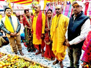खगड़िया. शहर के जयप्रकाश नगर मुहल्ला के वार्ड 30 में आयोजित शिव परिवार व प्राण प्रतिष्ठा के तीसरे दिन शनिवार को विद्वान पंडितों द्वारा पूजन किया गया. उसके बाद महा आरती का आयोजन किया गया. श्रद्धालुओं के बीच प्रसाद का वितरण किया गया. पूर्व वार्ड पार्षद सह राजद जिला मीडिया प्रभारी रणवीर कुमार ने कहा कि शिव परिवार सह प्रतिमा के प्राण प्रतिष्ठा के तीसरे दिन फलाधिवास किया गया. उन्होंने बताया कि रविवार को मंदिर में अधिष्ठापित होने वाले भगवान का शोभायात्रा निकाला जायेगा. इसी दौरान आस-पास के पांच मंदिरों में स्थापित भगवान से मिलाया जायेगा. बताया कि 10 फरवरी को प्राण प्रतिष्ठा पूजा पूर्ण होगा और सभी देवताओं के मूर्ति को मंदिर में स्थापित किया जायेगा. पूर्व वार्ड पार्षद ने बताया कि प्राण प्रतिष्ठा के पहला दिन कलश यात्रा के बाद गणेश पूजन कर देवताओं का आह्वान किया गया. देवता पूजन के बाद मंदिर में अधिष्ठापित होने वाले भगवान बाबा भोलेनाथ का शिवलिंग, मैया पार्वती, गणेश जी, कार्तिक जी व हनुमानजी के प्रतिमा को जलाधिवास कराया गया. प्राण प्रतिष्ठा के दूसरे दिन गेहूं, धान व अन्न के भंडार में अन्नाधिवास कराया गया. जबकि तीसरा दिन फलाधिवास कराया गया. जिसमें मुख्य जजमान मोहन चौधरी थे. वहीं श्रद्धालु जितेंद्र कुमार,अमित कुमार, ज्ञान कुमार, मनोज चौधरी, पूर्व वार्ड पार्षद रणवीर कुमार, नवीन चौधरी सहित दर्जनों महिलाओं द्वारा फल से भगवान भोलेनाथ, मैया पार्वती,गणेश जी, कार्तिक जी तथा हनुमानजी के मूर्ति को ढककर फलाधिवास किया गया. पूरे विधि विधान के बाद आरती किया गया. इसके बाद श्रद्धालुओं के बीच प्रसाद का वितरण किया गया. रहीमपुर उत्तरी पंचायत के मुखिया निरंजन चौधरी और वार्ड पार्षद प्रतिनिधि मनोज चौधरी ने बताया कि प्राण प्रतिष्ठा पूजा समापन बाद 10 फरवरी की संध्या से 11 फरवरी के संध्या तक 24 घंटे का रामधुनी यज्ञ का आयोजन किया जायेगा.