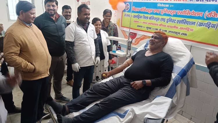 खगड़िया. सदर अस्पताल परिसर स्थित ब्लड बैंक में शुक्रवार को शिविर लगाया गया. शिविर में जिला केमिस्ट एंड ड्रगिस्ट एसोसिएशन से जुड़े दवा विक्रेताओं ने ब्लड डोनेट किया. एसोसिएशन के अध्यक्ष राजीव रंजन ने बताया कि केमिस्ट एंड ड्रगिस्ट एसोसिएशन के राष्ट्रीय अध्यक्ष जेएस शिंदे की 75 वीं वर्षगांठ के अवसर पर शिविर लगाया गया. रक्त दान शिविर में जिले के सभी केमिस्ट ने बढ़चढ़कर भाग लिया. मौके पर नार्थ ईस्ट जोन के संगठन सचिव मुकेश कुमार, सचिव राजीव कुमार राजू, उप सचिव रंजन कुमार, उपाध्याय राजेश कुमार, संगठन सचिव राजेश वर्मा, कोषाध्यक्ष अनिल कुमार आदि मौजूद थे.