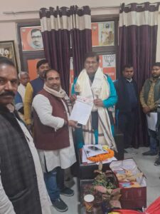 बिस्कोमान भवन निर्माण की मांग को ले भाजपा जिला उपाध्यक्ष ने मंत्री को सौंपा ज्ञापन