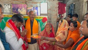 खगड़िया. सदर विधानसभा क्षेत्र के एनडीए समर्थित जदयू उम्मीदवार बबलू कुमार मंडल ने रविवार को रहीमपुर मध्य पंचायत में आशीर्वाद यात्रा कार्यक्रम चलाया. इस दौरान उन्होंने कल्लर टोला, दुर्गापुर, अम्बाडीह होते हुए नन्हकू मंडल टोला में जनसंपर्क किया. मतदाताओं से मिलकर आगामी 06 नवम्बर 2025 को होने वाले मतदान करने की अपील की. एनडीए प्रत्याशी बबलू मंडल मेनका-कार्तिकेय सदन पहुंचे. तो मां-बहनों ने अंगवस्त्र और माला से जोरदार स्वागत किया. मेनका देवी ने परिवार की महिला सदस्यों के साथ बबलू मंडल को चुनावी महासंग्राम के लिए तिलक लगाकर आशीर्वाद दी. उन्होंने जानकारी दी कि बिहार के विकास पुरुष, मुख्यमंत्री नीतीश कुमार की विशाल चुनावी सभा 4 नवम्बर को मथुरापुर खेल मैदान में होगी. मौके पर पूर्व विधायक चन्द्रमुखी देवी, जदयू जिला उपाध्यक्ष दीपक सिन्हा, भाजपा नेता सीए अनुज कुमार सिंह, जदयू जिला प्रवक्ता आचार्य राकेश पासवान शास्त्री, धीरेंद्र सिंह टुड्डू, किसान प्रकोष्ठ के प्रदेश महासचिव प्रभाकर चौधरी मन्टून, उपाध्यक्ष विनय कुमार पटेल, भाजपा जिला मुख्य प्रवक्ता मनीष कुमार राय, भाजपा मंडल अध्यक्ष अनुपम सिंह, राजू गुप्ता, महासचिव अनुज शर्मा, जयप्रकाश मौर्य, मंडल अध्यक्ष अजय चौधरी, डॉ. सुशील कुमार, लोजपा रामविलास नेता शम्मी पासवान, सुबोध पासवान, हरिवंश कुमार, ऋतुराज, सूर्यवंश आदि मौजूद थे.