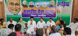 खगड़िया. शहर के कचहरी रोड स्थित जदयू कार्यालय में शुक्रवार को पार्टी के प्रदेश प्रवक्ता परिमल कुमार ने प्रेसवार्ता किया. प्रदेश प्रवक्ता ने कहा कि जाति आधारित जनगणना केवल आंकड़ों का संग्रह नहीं, बल्कि यह राष्ट्रीय धर्म और भारतीय संस्कृति की विशिष्टता है. उन्होंने कहा कि मुख्यमंत्री नीतीश कुमार वर्ष 1990-94 से ही पिछड़ा, अति पिछड़ा, अनुसूचित जाति, जनजाति एवं सवर्ण गरीबों को सामाजिक न्याय दिलाने के लिए संघर्षरत हैं. कहा कि अब प्रधानमंत्री ने भी पूरे देश में जाति आधारित जनगणना कराने का जो निर्णय लिया है, वह ऐतिहासिक और अभूतपूर्व है. भाजपा के प्रदेश प्रवक्ता नीरज कुमार ने इस घोषणा को सामाजिक न्याय की दिशा में बड़ा कदम बताया. कहा कि केंद्र सरकार का यह निर्णय आजादी के बाद पहली बार ओबीसी, ईबीसी, एससी-एसटी और गरीब सवर्णों को उनकी वास्तविक हिस्सेदारी दिलाने की दिशा में मील का पत्थर साबित होगा. रालोमो के प्रवक्ता राहुल कुमार ने कहा कि आजादी के बाद से कांग्रेस की सरकारों ने कभी ओबीसी प्रधानमंत्री नहीं बनाया और न ही इस वर्ग को समुचित प्रतिनिधित्व दिया. जदयू जिलाध्यक्ष बबलू कुमार मंडल ने कहा कि बिहार मॉडल पर देशभर में जातिगत जनगणना कराने का निर्णय एनडीए सरकार का ऐतिहासिक और सराहनीय कदम है. भाजपा जिलाध्यक्ष शत्रुघ्न भगत, रालोमो जिलाध्यक्ष कृष्ण कुमार सिंह, हम पार्टी के जिलाध्यक्ष रामवलि राम ने कहा कि जाति आधारित जनगणना से पूरे देश में सामाजिक न्याय को नई दिशा मिलेगी और डॉ भीमराव आंबेडकर, महात्मा गांधी, जयप्रकाश नारायण, डॉ लोहिया और कर्पूरी ठाकुर के सपनों का भारत बनेगा. कार्यक्रम की अध्यक्षता जदयू जिलाध्यक्ष ने की. एनडीए कार्यकर्ताओं ने प्रदेश प्रवक्ता एवं पार्टी के पदाधिकारियों को अंग वस्त्र और माला से स्वागत किया. मौके पर जदयू मीडिया पैनलिस्ट डॉ मधुरेन्द्र पांडेय, जदयू जिला प्रवक्ता आचार्य राकेश पासवान शास्त्री, भाजपा जिला प्रवक्ता मनीष कुमार राय, लोजपा (रामविलास) के जिला प्रवक्ता मनीष कुमार उर्फ नाटा सिंह, हम पार्टी के जिला प्रवक्ता पंकज यादव, जदयू उपाध्यक्ष उमेश सिंह पटेल, कोषाध्यक्ष संदीप केडिया, उपाध्यक्ष सुबोध यादव, जदयू नेता डॉ. विद्यानंद दास, किसान प्रकोष्ठ के प्रदेश महासचिव प्रभाकर चौधरी मंटून, तकनीकी प्रकोष्ठ के प्रदेश महासचिव मनोज कुमार सिंह, जिला महासचिव राजीव रंजन, अनुज शर्मा, पंकज चौधरी, मानसी प्रखंड अध्यक्ष राजनीति प्रसाद सिंह, नगर परिषद कार्यकारी अध्यक्ष प्रभात शर्मा, संजय पोद्दार, राजीव कुमार ठाकुर, नरेश कुमार, भाजपा जिला महामंत्री डॉ इन्दूभूषण कुशवाहा, भाजपा जिला उपाध्यक्ष प्रमोद साह, सुनील चौधरी, आलोक विद्यार्थी, पूर्व जिला महामंत्री सुनील साह आदि उपस्थ