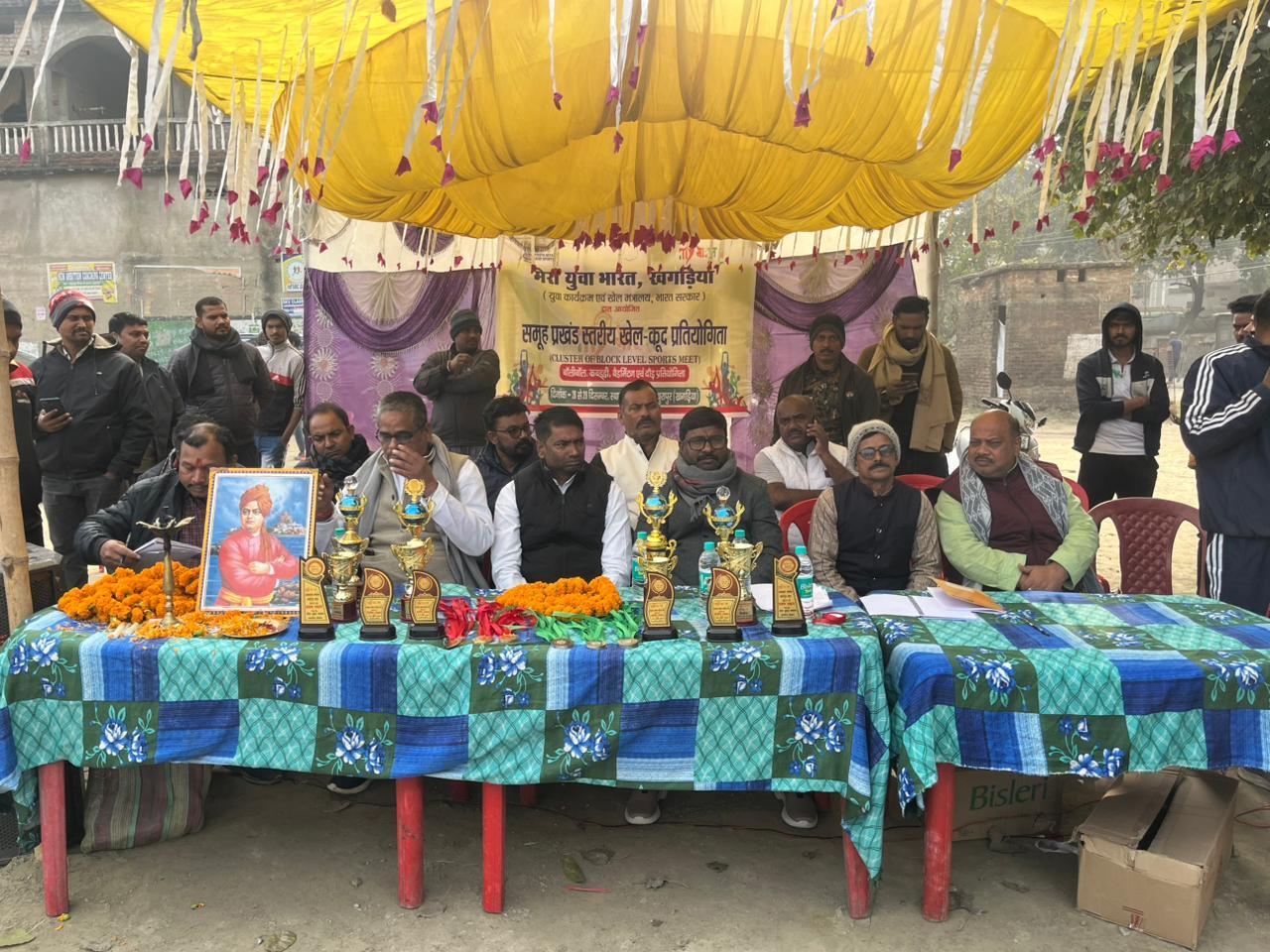 खगड़िया. नगर परिषद क्षेत्र के मथुरापुर खेल मैदान में रविवार को मेरा युवा भारत कार्यक्रम के तहत दो दिवसीय प्रखंड स्तरीय खेलकूद प्रतियोगिता का आयोजन किया गया. खेलकूद प्रतियोगिता का उद्घाटन सदर विधायक बबलू कुमार मंडल, प्रखंड प्रमुख नवीन कुमार व नगर थाना के सब इंस्पेक्टर के बिना कुमारी ने संयुक्त रूप से दीप प्रज्वलित कर किया. खेल प्रतियोगिता में प्रखंड के वॉलीबॉल की कुल छह टीमों ने भाग लिया. एथलेटिक्स प्रतियोगिता में 400 मीटर बालिका दौड़ में प्रथम स्थान रिमझिम कुमारी, द्वितीय स्थान आकृति राज, तृतीय स्थान रेशम कुमारी तथा बालक वर्ग में 400 मीटर दौड़ में प्रथम स्थान प्रियांशु कुमार, द्वितीय स्थान रितेश कुमार, तृतीय स्थान राम पूजन कुमार ने प्राप्त किया. सदर विधायक बबलू कुमार मंडल ने कार्यक्रम को संबोधित करते हुए कहा कि आज के युवाओं को खेल कूद में बढ़-चढ़कर भाग लेने की जरूरत है, क्योंकि खेल के प्रति भारत सरकार व बिहार सरकार मिलकर युवाओं को आगे बढ़ने का काम कर रहे हैं. सब इंस्पेक्टर ने कहा कि आज के परिवेश में महिला भी किसी क्षेत्र में कम नहीं है. प्रमुख ने कहा कि खेल से अनुशासन, शिष्टाचार, राष्ट्र प्रेम की एकता एवं युवाओं को अच्छा संस्कार मिलता है. मंच संचालन जिला संगठन आयुक्त भारत स्काउट एंड गाइड इंद्रदेव कुमार ने किया. प्रतियोगिता को सफल बनाने में रोशन कुमार, अरमान कुमार, छोटू कुमार,विशाल कुमार, कविता कुमारी, रणधीर कुमार, प्रमोद पासवान व राष्ट्रीय युवा कोर हरजीत सिंह, बाल्मीकि कुमार, प्रतीक्षा कुमारी, नीरज कुमार का अहम भूमिका रहा.