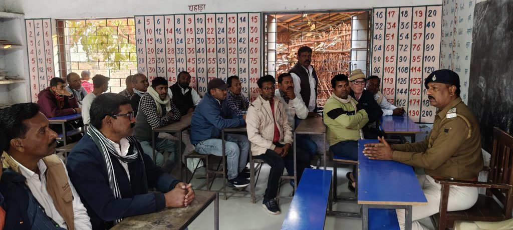 पसराहा. थाना परिसर में सरस्वती पूजा को लेकर शांति समिति की बैठक हुई, जिसकी अध्यक्षता डॉ सुधीर प्रसाद सिंह व संचालन पूर्व समिति रणधीर कुमार रंगकर्मी ने किया. बैठक में थानाध्यक्ष संजय कुमार विश्वास ने शांति व सौहार्द से सरस्वती पूजा व मेला मनाने की अपील की. उन्होंने कहा कि सरस्वती मेला में असमाजिक तत्वों, शराबी, स्मेकर पर विशेष निगाह रहेगी. मौके पर सरपंच प्रतिनिधि रणधीर कुमार, पंचायत समिति जय चंद्र कुमार, उप सरपंच प्रतिनिधि अंशु कुमार, झालेन्द्र सिंह, अम्रेश कुमर, वार्ड सदस्य पुरुषोत्तम कुमार, विजय यादव, मुकेश कुमार, अशोक सिंह,गौरव कुमार, अखलेश कुमार, मुकेश साह आदि मौजूद थे.
