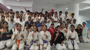 खेल भवन में आयोजित जिला स्तरीय विद्यालय खेल प्रतियोगिता में एसवीएम जलकौड़ा के कराटे खिलाड़ियों ने शानदार प्रदर्शन किया