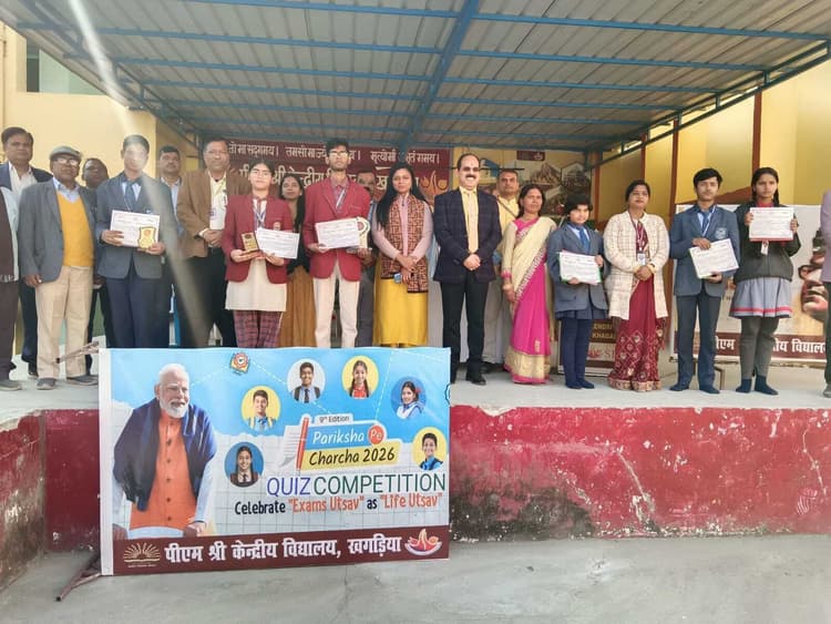 खगड़िया. शहर के पीएम केंद्रीय विद्यालय में पराक्रम दिवस मनाया गया. शुक्रवार को आयोजित पराक्रम दिवस के अवसर पर ऑपरेशन सिंदूर विषय आधारित जिला स्तरीय प्रश्नोत्तरी प्रतियोगिता का आयोजन किया गया. प्रतियोगिता में 12 विद्यालयों के 100 छात्र एवं छात्राओं ने किया. प्रतियोगिता दो चरणों में निर्धारित किया गया. जिसमें पहला मिडिल स्टेज जिसमें कक्षा 6 से 8 तक के विद्यार्थियों की प्रतिभागिता हुई. दूसरा सेकेंडरी स्टेज में कक्षा 9 से 12 तक के विद्यार्थियों ने भाग लिया. इस प्रतियोगिता में मध्यमा वर्ग से प्रथम पुरस्कार रोज बड एकेडमी की कक्षा छठी की छात्रा सृष्टि श्री, द्वितीय पुरस्कार रोज बड एकेडमी के छात्र मोहम्मद अयान व तृतीय पुरस्कार पीएम श्री केंद्रीय विद्यालय की कक्षा आठवीं की छात्रा स्मिता कुमारी को मिली. उच्च मध्यमा वर्ग में प्रथम पुरस्कार एसएल डीएवी पब्लिक स्कूल के 11वीं के छात्र आयुष कुमार, तथा द्वितीय पुरस्कार नवमी की छात्रा आस्था कुमारी एवं तृतीय पुरस्कार रोज बड एकेडमी के दसवीं के छात्र अभिषेक कुमार को मिला. सभी विजेताओं को विद्यालय के प्राचार्य कुमार ठाकुर ने पुरस्कार दिया. प्राचार्य ने सुभाष चंद्र बोस जी की जयंती पराक्रम दिवस पर नेताजी सुभाष चंद्र बोस की जीवनी से प्रेरित होकर विद्यार्थियों को देशभक्त राष्ट्रभक्ति की अलख जगाने का आवाहन किया. इस प्रश्नोत्तरी प्रतियोगिता के संयोजक पीएम श्री केंद्रीय विद्यालय के शिक्षक सुजीत कुमार गुप्ता एवं मंच संचालक प्रदीप कुमार एवं प्रिया निर्मल ने किया. कार्यक्रम में विद्यालय के शिक्षक मुन्ना कुमार विश्वकर्मा, बीएस त्रिपुरारी , सुधांशु प्रियदर्शी एवं कार्यालय प्रभारी प्रफुल्ल कुमार रोशन ने महत्वपूर्ण भूमिका निभाया.