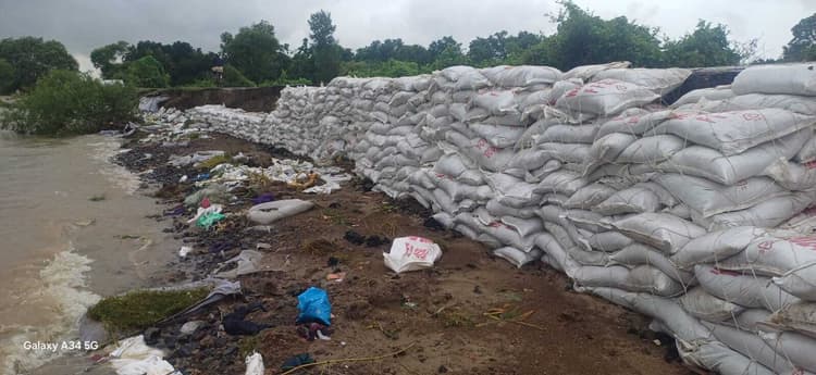 परबत्ता. गंगा नदी के जलस्तर में धीरे-धीरे कमी आना शुरु हो गया है. परबत्ता प्रखंड तीन तरफ से गंगा नदी से घिरा हुआ है. वहीं दूसरी ओर सोमवार की देर रात आंधी तूफान में गंगा नदी के थपेड़ों ने नयागांव रिंग बांध को तहस -नहस कर दिया. लगभग डेढ किलोमीटर का नयागांव रिंग बांध क्षतिग्रस्त हो गया. सोमवार की रात से ही जल संसाधन विभाग बाढ़ नियंत्रण द्वारा युद्ध स्तर पर मरम्मत कार्य आरंभ कर दिया गया. इधर सोमवार से रुक रुक कर हो रही बारिश ने कार्य को बाधित कर रहा है. जेई वसंत कुमार ने बताया कि करीब डेढ़ सौ मजदूर सुरक्षात्मक कार्य में लगे हुए हैं. आगे और मजदूर बढ़ाया जाएगा. बारिश में परेशानी का सामना करना पड़ रहा है. साथ ही मजदूरों को रहने की उत्तम व्यवस्था नही होने कारण मजदूर नही टिक पा रहा है. हालांकि स्थानीय ग्रामीण से मदद ली जा रही है. दिन रात मजदूर को शिप्ट बनाकर काम लिया जा रहा है.