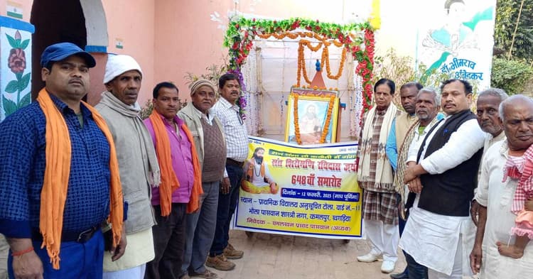 खगड़िया. माघी पूर्णिमा के पावन अवसर पर प्राथमिक विद्यालय कमलपुर तथा नन्हकू मंडल टोला में संत शिरोमणि रविदास जी की 648 वीं जयंती धूमधाम से मनायी गयी. समारोह की अध्यक्षता सेवा निवृत्त शिक्षक रामलखन प्रसाद पासवान व जदयू के जिला प्रवक्ता आचार्य राकेश पासवान शास्त्री ने किया. आयोजन समिति के कार्यकर्ताओं द्वारा भव्य तरीके से शोभा यात्रा निकाली गयी. उनके तैलचित्र पर माल्यार्पण एवं पुष्पांजलि अर्पित कर नमन किया गया. मन चंगा तो कठौती में गंगा व संत शिरोमणि रविदास जी की जयकारे भी लगाए गये. राम लखन प्रसाद पासवान ने कहा कि संत रविदास जी का मानव कल्याण के लिए आविर्भाव हुआ है. वे सदैव सामाजिक दुर्गुणों को प्रवचन दोहा भजन क्रांति से खत्म करने का प्रयास करते रहे. वे शांति सहार्द, प्रेम, एकता और समानता के संदेश वाहक थे. आचार्य राकेश पासवान शास्त्री ने कहा कि संत रविदास जी भक्ति आंदोलन के रहस्यवादी कवि और महान संत थे. मौके पर शिक्षक सनातन कुमार, शिक्षक डॉ पुरातन गांधी, शिक्षक संजय गांधी, मेनका देवी, कला देवी, राजकुमारी देवी, सुमित्रा देवी, ईशा देवी, दीपक कुमार पासवान, हरवंश कुमार, डॉ. नवीन कुमार पासवान, केपी समदर्शी, नवल किशोर सहनी, सूरज दास, भुनेश्वर पासवान, सूर्यवंश कुमार आदि मौजूद थे.