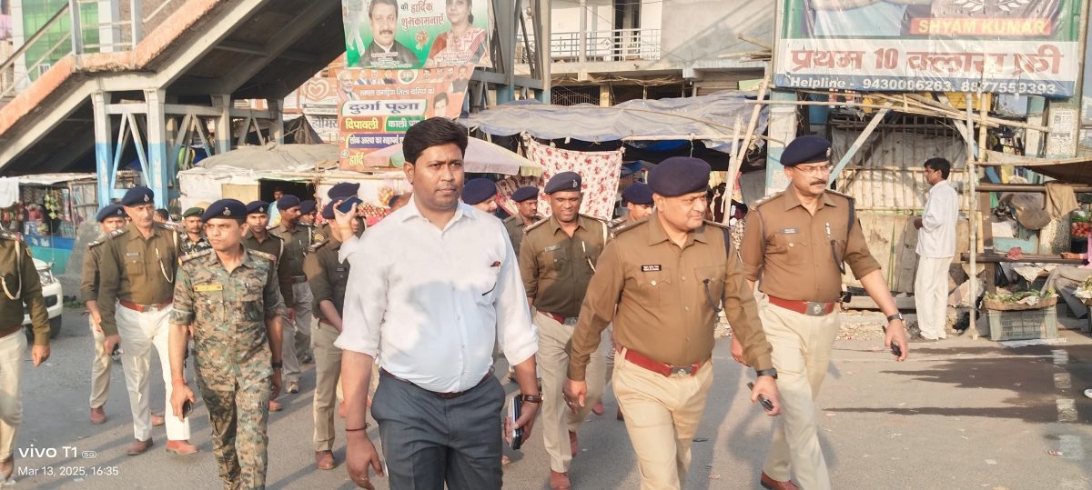 एसडीओ व पुलिस पदाधिकारियों ने किया फ्लैग मार्च
