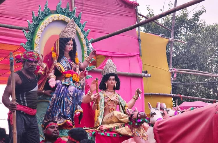 गोगरी. नगर परिषद के वार्ड नं 30 रामपुर रोड में आयोजित छठ मेला का प्रतिमा विसर्जन के साथ ही मंगलवार को समापन हो गया. प्रतिमा विसर्जन में मेला समिति के लोगों के अलावे स्थानीय लोगों ने बढ़ चढ़कर हिस्सा लिया. गाजे बाजे के साथ प्रतिमा को विसर्जन से पहले जमालपुर शहर के विभिन्न चौक चौराहे पर घुमाया गया. प्रतिमा विसर्जन की टोली में शामिल युवाओं ने विसर्जन के क्रम में बज रहे गीतों पर जमकर झूमे. बाजार में जगह-जगह लोग विसर्जन को जा रही प्रतिमाओं को रोक प्रणाम करने के साथ-साथ धूप व दीप भी दिखाते नजर आये. विसर्जन में युवाओं की भीड़ लाउडस्पीकर की धुन पर खूब थिरकते दिखे. साथ ही छठ मैया का जय घोष करते रहे. अंत में जीएन बांध के नीचे गंगा की उपधारा में विसर्जन किया गया. मौके पर मेला मंत्री कर्णदीप कुमार, मेला अध्यक्ष नागेश्वर यादव, बाजार प्रभारी सुभाष साह, मेला प्रभारी सह रामपुर सरपंच नूर आलम, नीरज कुमार, मुकेश साह, राजेश कुमार, पियूष यादव, श्रीराम साह, सहित सैकड़ों श्रद्धालुओं ने विसर्जन में भाग लिया.