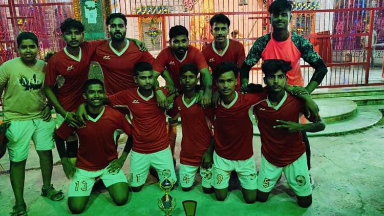 गोगरी. प्रखंड क्षेत्र के शिरनियां में आयोजित दो दिवसीय काली पूजा के अवसर पर शिरनियां स्थित कालिका ग्राउंड पर एक दिवसीय फुटबॉल क्रिकेट टूर्नामेंट का आयोजन मंगलवार को किया गया. टूर्नामेंट का मुकाबला शिरनियां और चौथम टीम के बीच हुआ. जिसमें शिरनियां की टीम ने चौथम के टीम को 4-2 से हराकर कप पर कब्जा जमा लिया. मेला कमेटी द्वारा दोनों टीम के खिलाड़ियों के बीच पुरस्कार का भी वितरण किया गया. उक्त जानकारी शिरनियां फुटबॉल टीम के कप्तान अमिताभ मिश्रा ने दिया है.