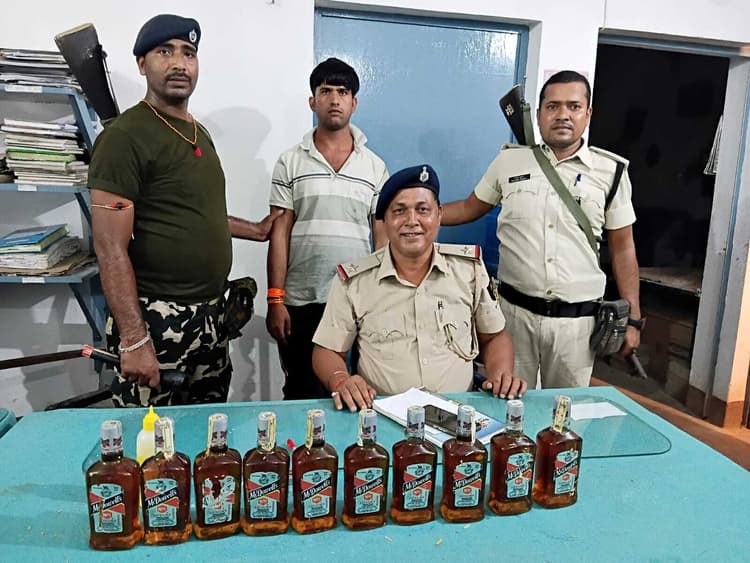 पसराहा. पुलिस ने शुक्रवार की देर शाम गुप्त सूचना के आधार पर शराब की डिलिवरी करने जा रहे एक तस्कर को गिरफ्तार किया है. गिरफ्तार तस्कर के पास से पुलिस ने 10 बोतल शराब बरामद की. थानाध्यक्ष नवीन कुमार व एएसआई राजेश दास ने बताया कि गुप्त सूचना मिली थी की शराब की डिलेवरी की जा रही है. सूचना पर अपने दलबल के साथ मौके पर पहुंचकर सोनडीहा स्टेट बैंक के पास जांच की गयी. जहां जांच के क्रम में शराब के साथ एक कारोबारी को गिरफ्तार कर लिया गया. गिरफ्तार कारोबारी की पहचान अररिया गांव निवासी राजेश यादव के रूप में की गयी.