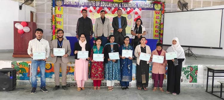 खगड़िया डायट परिसर में शनिवार को टीएलएम मेला 3.0 का आयोजन किया गया. कार्यक्रम का उद्घाटन जिला शिक्षा पदाधिकारी अमरेंद्र कुमार गोंड व जिला कार्यक्रम पदाधिकारी शिवम कुमार ने दीप प्रज्वलित कर किया. उन्होंने कहा कि टीएलएम बच्चों के अधिगम को प्रभावी, रुचिकर और स्थायी बनाने का सशक्त माध्यम है. कार्यक्रम में जिले के विभिन्न विद्यालयों से आए प्रतिभागी शिक्षकों ने अपने-अपने विषयों से संबंधित नवाचारी शिक्षण-सामग्री का प्रदर्शन किया. शिक्षकों की सृजनशीलता, प्रयोगधर्मिता व बाल-केन्द्रित दृष्टिकोण ने उपस्थित शिक्षाविदों को प्रभावित किया. गणित विषय में प्राथमिक विद्यालय जयंती ग्राम औता गोगरी के अविनाश कुमार, मध्य विद्यालय कासिमपुर के सलोनी सिंह, प्राथमिक विद्यालय बहादुरपुर अलौली के नेहा मोदनवाल, विशेष उल्लेख मुस्कान कुमारी, अंग्रेजी विषय में प्राथमिक विद्यालय जयंती ग्राम औता के मधु कुमारी विद्यार्थी, प्राथमिक विद्यालय नोनिया टोला मानसी के मधु कुमारी, हिंदी विषय में मध्य विद्यालय मोरकाही के दीपशिखा कुमारी, उर्दू विषय में प्राथमिक मकतब सोनिहार अलौली के मोहम्मद शाहनवाज, पर्यावरण विषय में मध्य विद्यालय डीह संजोती अलौली अमर कुमार, मध्य विद्यालय नोनिया टोला मानसी के सृष्टि कुमारी का चयन किया गया. मौके पर निर्णायक मंडल में विक्रांत भास्कर, तेजनारायण, डायट के प्राचार्य मनोज यादव, व्याख्याता मधु, औरंगजेब एवं अमरनाथ शामिल थे.