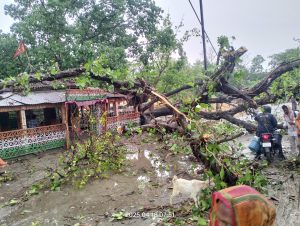 पसराहा. थाना क्षेत्र में आंधी व बारशि के कारण जगह-जगह पेड़ गिर गये. आंधी के कारण बिजली के खंभे गिरने से बिजली आपूर्ति ठप हो गयी. बीते गुरुवार की रात क्षेत्र में आंधी ने तबाही मचायी है. रात्रि लगभग 10 बजे आंधी व बरसात ने प्रखंड क्षेत्र के लगभग सभी गांवों में कहर बनकर टूटा है. आंधी व बरसात से लोगों के फूंस और चदरे का मकान को उडा दिया. आंधी व बरसात से मक्का की फसल क्षतिग्रस्त हो गया.