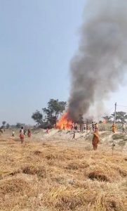 आग लगने के पहले सीता देवी अपने साथ पांच बेटियों के साथ गेहूं काटने गयी थी. पिता दोनों पुत्र को लेकर बहियार आने की बात कहकर पत्नी को भेज दिया. इसी बीच दोनों बच्चे घर में सो गया था. पिता बालक को सोता देखा अकेला बहियार चला गया. तेज पछुआ हवा की चिंगारी से संजय सिंह के घर में आग लगी. देखते ही देखते घर धू धू कर जल गया.
