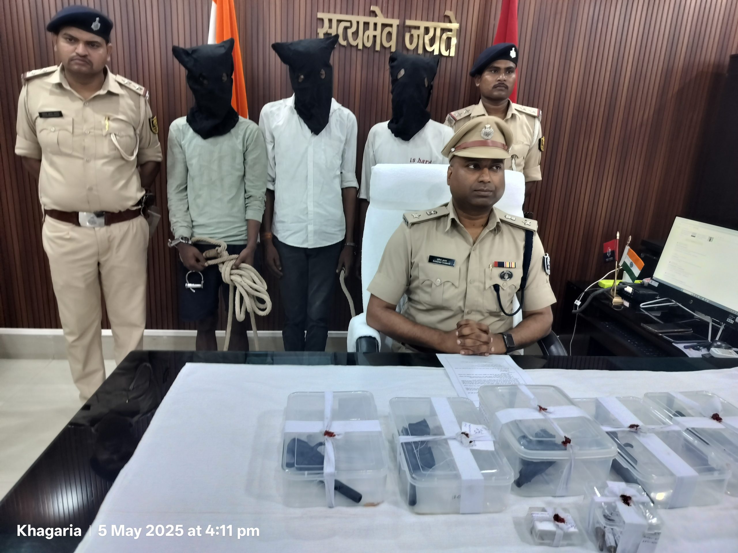 खगड़िया. पसराहा थाना क्षेत्र में राहगीर महिला से कान की बाली छिनतई की जानकारी मिलते ही पुलिस क्विक एक्शन में आ गयी. छिनतई में शामिल तीन युवकों को पुलिस ने 24 घंटे के अंदर गिरफ्तार कर लिया. छिनतई की गयी कान की बाली बरामद कर लिया गया. एसपी राकेश कुमार ने पसराहा थानाध्यक्ष को पुरस्कृत करने की घोषणा की. सोमवार को एसपी राकेश कुमार ने प्रेसवार्ता कर बताया कि पसराहा थाना में बेहतर काम हुआ है. 24 घंटे के अंदर बदमाशों के पास 11 कट्टा, 31 कारतूस बरामद किया गया है. उन्होंने बताया कि दीनाचकला गांव निवासी दशरथ साह की पत्नी उषा देवी के कान की बाली की छिनतई चार मई को हुयी थी. घटना के बाद पसराहा थाना में कांड संख्या 116-25 दर्ज किया गया था. घटना में शामिल सेवानिवृत शिक्षक के पुत्र व स्वच्छता अधिकारी के पुत्र सहित तीन युवक को 12 घंटे के अंदर गिरफ्तार किया गया है. उन्होंने बताया कि बदमाशों के पास से चार देशी कट्टा, एक रिवाल्वर, छह जिंदा कारतूस बरामद किया है. बताया गया कि पसराहा थाना क्षेत्र के दीनाचकला गांव निवासी सेवानिवृत शिक्षक प्रमोद सिंह के पुत्र अंकित कुमार, महद्दीपुर निवासी स्वच्छता अधिकारी आलोक कुमार उर्फ मंटू सिंह के पुत्र गुलशन कुमार उर्फ आदित्य राज तथा सोन्डीहा निवासी किसान सुखदेव नारायण सिन्हा के पुत्र रंजीत कुमार उर्फ पारो उर्फ प्रभु सिंह को गिरफ्तार किया गया है. गिरफ्तार युवक के पास से चार देशी कट्टा, एक रिवाल्वर, छह जिंदा कारतूस बरामद किया गया है.स्मैकर युवक दे रहे थे घटना का अंजाम