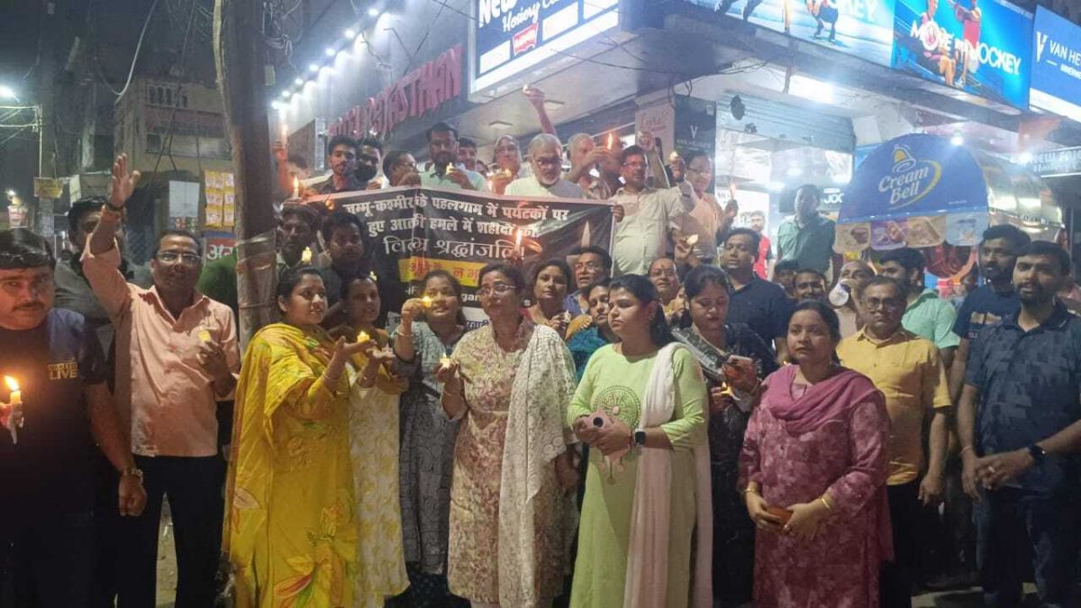 आतंकी हमले में मारे गये पर्यटकों को कैंडिल मार्च निकालकर दी श्रद्धांजलि