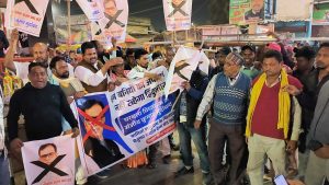 खगड़िया. जदयू विधायक व सांसद के बीच जुबानी विवाद की लपटें वैश्य समाज तक पहुंच गयी है. मंगलवार को वैश्य समाज के लोगों ने जदयू विधायक के विरूद्ध में आक्रोश मार्च निकाल कर पुतला दहन किया है. पुतला दहन कार्यक्रम में वैश्य समाज के समाज के मक्खन शाह, शिक्षक अमित पोद्दार, नीतीश कुमार आजाद, अविनाश कुमार गुप्ता, मनोज गुप्ता, अमीश कुमार, अभिमन्यु कुमार, महेश कुमार, रूपेश कुमार, गायत्री भारती, अजय शाह, सुरेंद्र पोद्दार, तारिणी पोद्दार, पांडव पोद्दार, पिंटू लहेरी, पप्पू कुमार, जितेंद्र शाह, वैश्य समाज के अमित कुमार पोद्दार ने विधायक डॉ संजीव कुमार के बयान की निंदा की. विधायक डॉ संजीव कुमार द्वारा बनिया समाज को अपमानित किया है. सभी बनिया मिलकर एनडीए को जीताने का काम करते हैं. परबत्ता विधायक द्वारा बनिया का जाति सूचक शब्दों के साथ प्रतिकार करना निंदनीय है. प्रतिरोध मार्च शहर के मछली भवन से होते हुए राजेंद्र चौक पर पहुंची. जहां विधायक का पुतला दहन किया गया. अभिमन्यु गुप्ता ने कहा कि आए दिन लोग बनिया समाज को कमजोर समझते हैं और उन्हें गाली गलौज करते रहते हैं. लेकिन एक समाज का प्रतिनिधि के द्वारा इस तरह का शब्द का चयन निंदनीय है. मनोज गुप्ता ने कहा कि अब समय आ गया है सभी बनिया एकजुट होकर अपनी शक्ति का एहसास कराएंगे. कार्यक्रम में दिलीप कुमार गुप्ता, उमेश कुमार आदि ने संबोधित किया.