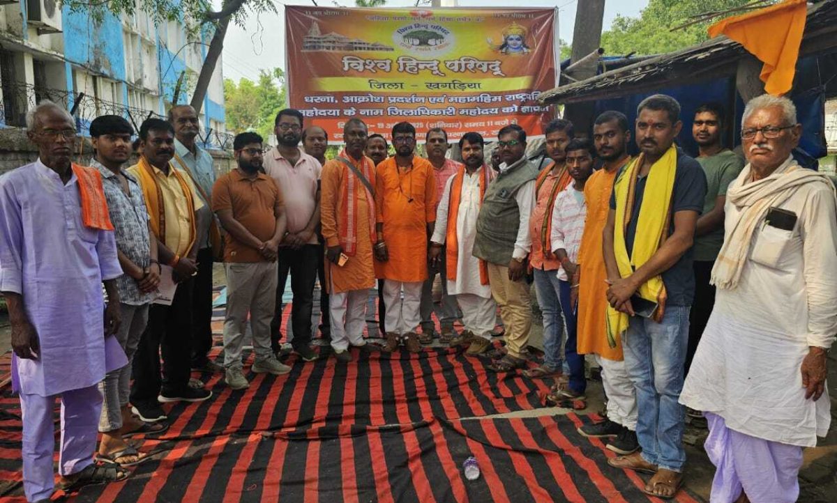 विहिप के जिला मंत्री संजय कुमार वर्मा के नेतृत्व में धरना प्रदर्शन किया गया
