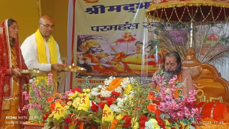 सन्हौली राम जानकी ठाकुरबाड़ी में चल रहा सात दिवसीय महाविष्णु यज्ञ खगड़िया. सन्हौली के श्री राम जानकी ठाकुरबाड़ी परिसर में आयोजित सात दिवसीय श्री महाविष्णु यज्ञ सह श्रीमद् भागवत कथा के दौरान रामचंद्राचार्य परमहंस स्वामी आगमानंद महाराज ने कहा कि जब जब अत्याचार, दुराचार बढ़ा तो प्रभु का अवतार हुआ है. यज्ञ के चौथे दिन भगवान श्री कृष्ण के जन्म की कथा सुनाई. श्रीकृष्ण जन्मोत्सव धूम धाम से मनाया गया. कथा व्यास स्वामी जी ने भगवान श्री कृष्ण अवतार पर चर्चा करते हुए कहा कि गज जीव हैं. ग्राह माया हैं. माया से जीव को परमात्मा कृष्ण ही छुड़ाते हैं. जीवन के समुद्र का मंथन देव दानव दो प्रवृत्ति मिलकर करते तो विष अमृत आदि 14 रत्न निकलते हैं. मुसीबत में केवल इंसान को भगवान ही साथ देते हैं. प्राणी मोहमाया और परिवार में माया जाल में फसकर प्रभु को भूल जाता. उन्होंने कहा कि भगवान श्रीकृष्ण स्वयं जानते थे कि वह परमात्मा हैं. उसके बाद भी वह अपने माता पिता के चरणों को प्रणाम करने में कभी संकोच नहीं करते थे. जब-जब धरा पर अत्याचार, दुराचार, पापाचार बढ़ा है, तब-तब प्रभु का अवतार हुआ है. प्रभु का अवतार अत्याचार को समाप्त करने और धर्म की स्थापना के लिए होता है. संसार के नश्वर भोग पदार्थों की प्राप्ति में अपने समय, साधन और सामर्थ्य को अपनाने की जगह हमें अपने अंदर स्थित परमात्मा को प्राप्त करने का लक्ष्य रखना चाहिए. इसी से जीवन का कल्याण संभव है. कृष्ण जन्मोत्सव की अनुपम झांकी चित्रण देखकर श्रोता देखकर गद गद हो उठें.