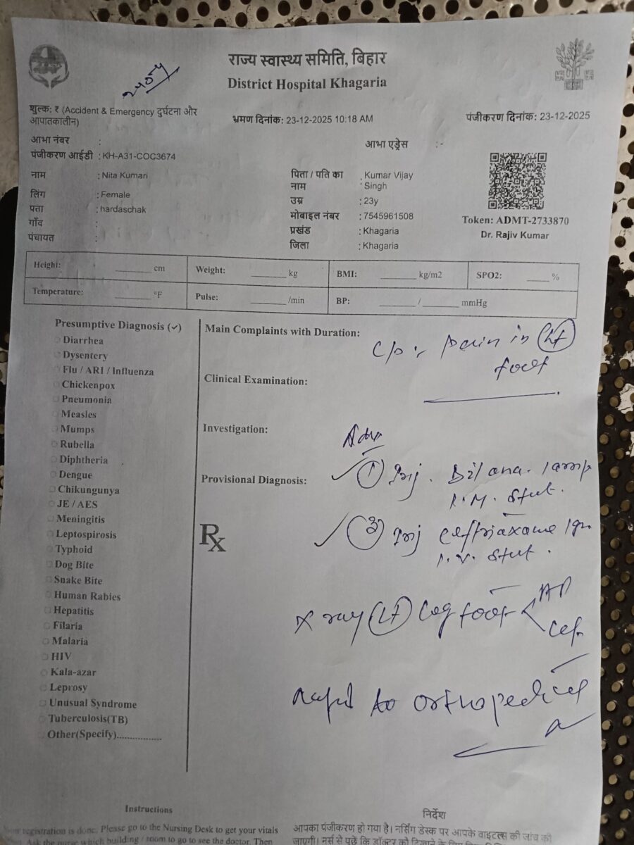 डीएस के हस्तक्षेप के बाद फिर से एक्स-रे कर्मी ने जख्मी युवती के ऐड़ी का एक्स-रे किया