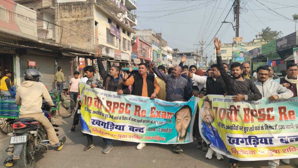 बीपीएससी की परीक्षा पुन: आयोजित करने की मांग को लेकर युवा शक्ति ने बंद कराया बाजार