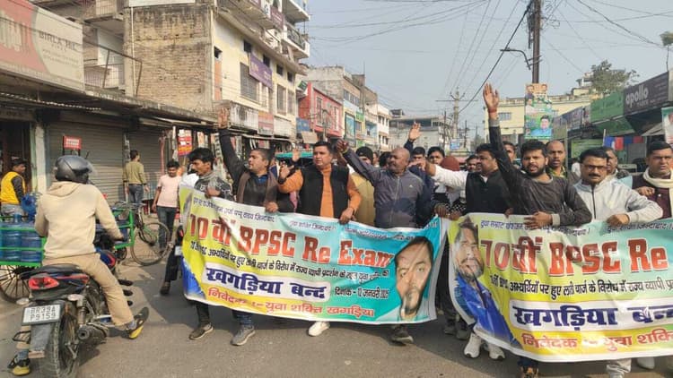 खगड़िया. 70वीं बीपीएससी परीक्षा को रद्द कर पुन: परीक्षा आयोजित करने की मांग को लेकर युवा शक्ति से जुड़े कार्यकर्ताओं ने रविवार को बाजार बंद कराया. पूर्णिया सांसद राजेश रंजन उर्फ पप्पू यादव के आह्वान पर जिले के सैकड़ों युवा शक्ति के नेताओं ने सड़क पर उतर कर दुकानें बंद करावाया. सरकार के खिलाफ जमकर नारेबाजी किया. बताया जाता है कि शहर के बलुआही स्थित ठाकुड़बाड़ी में युवा शक्ति के नेता इकट्ठा हुए. तत्पश्चात जुलूस निकालकर एमजी रोड से राजेन्द्र चौक की ओर रवाना हुए. रास्ते में पड़ने वाले सभी दुकानदारों से छात्रों के हित में समर्थन मांग कर सभी दुकानें बंद कराया. दुकानदारों ने भी सहर्ष आंदोलन को अपना समर्थन दिया. इस दौरान शहर के सड़क पर जाम की स्थिति बन चुका था. एमजी रोड होते हुए युवा शक्ति के कार्यकर्ताओं का जत्था राजेन्द्र चौक पर पहुंचा. वहां पहुंच कर जुलूस सभा में तब्दील हो गया. जिसकी अध्यक्षता युवा शक्ति के जिलाध्यक्ष राजेश कुमार यादव और संचालन युवा शक्ति के कार्यकारी जिलाध्यक्ष मिथुन कुमार शर्मा कर रहे थे. सभा में मुख्य अतिथि युवा शक्ति के राष्ट्रीय कार्यकारी अध्यक्ष नागेंद्र सिंह त्यागी ने कहा कि सरकार की मंशा छात्र के हित में नहीं है. एक तरफ महीने भर से बीपीएससी के अभ्यर्थियों द्वारा शांतिपूर्ण आंदोलन चलाया जा रहा है तो दूसरी तरफ सरकार उसपर लाठियां मारने की काम कर रही है. जिसे युवा शक्ति कदापि बर्दाश्त नहीं करेगी. उन्होंने कहा कि सरकार इस आंदोलन को हल्के में लेने की भूल न करके छात्रों की मांग को स्वीकार कर 70 वीं बीपीएससी परीक्षा को रद्द कर पुन: परीक्षा लें. सांसद राजेश रंजन उर्फ पप्पू यादव के नेतृत्व में विशाल छात्र आंदोलन चलेगा. युवा शक्ति के प्रदेश महासचिव कृष्णा नन्द यादव ने कहा कि सरकार द्वारा सिर्फ एक सेंटर का परीक्षा रद्द कर उसी सेंटर का पुन: परीक्षा लेना सरासर धोखा है. परीक्षा में धांधली सभी परीक्षा केंद्र पर हुई थी तो सिर्फ एक ही परीक्षा केंद्र पर परीक्षा लेना कहीं से उचित नहीं है. युवा शक्ति के जिलाध्यक्ष राजेश कुमार यादव, कार्यकारी जिलाध्यक्ष मिथुन कुमार शर्मा, अभय कुमार गुड्डू, प्रमुख अशोक कुमार पंत ने कहा कि आखिर क्या कारण है कि बीपीएससी सहित अन्य परीक्षाओं का पेपर लीक हो जाता है. सांसद पप्पू यादव के दिशा-निर्देश पर बीपीएससी अभ्यर्थियों के मांग के समर्थन में संघर्ष जारी रहेगा. सरकार जब तक छात्रों के साथ न्याय नहीं करेगी. तब तक युवा शक्ति सड़क पर उतर कर आंदोलन करते रहेंगे. मौके पर युवा शक्ति के कोषाध्यक्ष नीरज कुमार यादव, मनीष सम्राट, मदन सिंह, झलेंद्र यादव, अणु प्रवीण, कवि रंजन कुमार यादव, जवाहर यादव, धर्मेंद्र पोद्दार, अर्जुन यादव, फूलन यादव, सुमन कुमार, कृष्ण मो