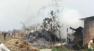 चनामना कारी गांव में आग लगने से 12 घर जलकर राख