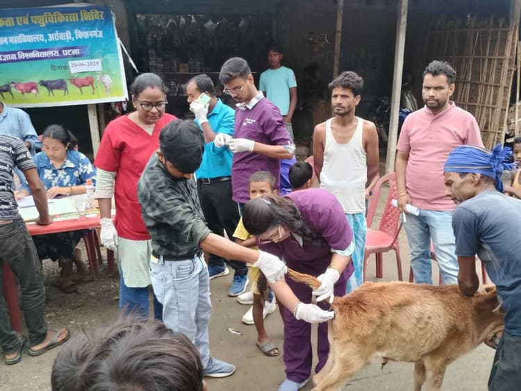 पहाड़कट्टा. पशु चिकित्सा एवं पशु विज्ञान महाविद्यालय अर्राबाड़ी में शुक्रवार को 67 वीं किसान संवाद एवं पशु चिकित्सा शिविर का आयोजन टेउसा पंचायत के सिमलबाड़ी गांव में किया गया.इस कार्यक्रम की आयोजिका डॉ सुचिता कुमारी सहायक प्राध्यापक ने बताया कि किसान संवाद का आयोजन महाविद्यालय अधिष्ठाता डॉ चंद्रहास के निर्देश में किया गया जिसका उद्देश्य पशुपालकों के द्वार पर चिकित्सा सुविधा उपलब्ध कराना एवं पशुपालन से संबंधित समस्याओं से अवगत होकर उनके निराकरण का प्रयास करना है. इस दौरान 31 पशुपालक परिवारों से संपर्क कर पशुपालन से संबंधित वैज्ञानिक गतिविधियों एवं पशुपालन महाविद्यालय में उपलब्ध चिकित्सा सुविधाओं की जानकारी दी गई. इस अवसर पर आयोजित पशुचिकित्सा शिविर में 129 पशुपालकों के 390 छोटे-बड़े पशुओं में गर्भ की जांच, कृमि की समस्या, प्रजनन से संबंधित समस्याओं का इलाज कर उचित परामर्श दिया गया तथा बीमारियों के निदान से संबंधित दवाइयों, खनिज तत्वों, कृमिनाशकों का निःशुल्क वितरण किया गया. इस अवसर पर टेउसा पंचायत मुखिया साजिदा खातून ने क्षेत्र के पशुपालकों से बड़ी संख्या में उपस्थित होकर शिविर का लाभ उठाने की अपील की. बेलवा पशु चिकित्सा पदाधिकारी डॉ गुणानंद प्रसाद सिंह सहित बड़ी संख्या में पशुपालकों ने कार्यक्रम को सफल बनाने में अपना योगदान दिया एवं पशुपालन से संबंधित समस्याओं के निराकरण के प्रयास के लिए वैज्ञानिकों एवं महाविद्यालय का आभार व्यक्त किया.