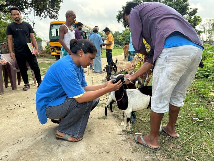 पहाड़कट्टा. पशु चिकित्सा विज्ञान महाविद्यालय अर्राबाड़ी द्वारा 69वां किसान संवाद व पशु चिकित्सा शिविर का आयोजन शुक्रवार को हालामाला पंचायत के मोतिहारी गांव में किया गया. कार्यक्रम की आयोजक असिस्टेंट प्रोफेसर डॉ कोमल ने बताया कि किसान संवाद का आयोजन कॉलेज डीन डॉ चंद्रहास के मार्गदर्शन में किया गया. इसका उद्देश्य पशुपालकों के द्वार पर चिकित्सा सुविधा उपलब्ध कराना व पशुपालन से संबंधित समस्याओं से अवगत होकर उनके निराकरण का प्रयास करना है. पशु चिकित्सा शिविर में 65 पशुपालकों के 152 छोटे-बड़े पशुओं में कृमि की समस्या, त्वचा संबंधी बीमारियां, भूख न लगने की समस्या, गर्भ की जांच, प्रजनन आदि से संबंधित समस्याओं का इलाज किया गया. पशुपालकों को उचित परामर्श दिया गया. बीमारियों के निदान से संबंधित दवाइयां, खनिज तत्वों, कृमिनाशकों का निःशुल्क वितरण किया गया. इस दौरान 15 पशुपालक परिवारों से संपर्क कर पशुपालन से संबंधित वैज्ञानिक गतिविधियों एवं पशुपालन महाविद्यालय में उपलब्ध चिकित्सा सुविधाओं की जानकारी दी गयी. किसान संवाद कार्यक्रम में पशुपालकों ने उत्साह पूर्वक भाग लिया.