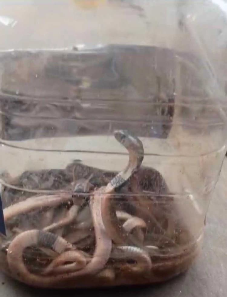 बहादुरगंज मिठाई की दुकान में मिले एक दो नहीं बल्कि दो दर्जन से अधिक किंग कोबरा. मामला जिले के बहादुरगंज प्रखंड अंतर्गत बांसबाडी हाट का है. एक मिठाई की दूकान में से 30 किंग कोबरा सांप को निकाला गया है. मिली जानकारी के मुताबिक कैसर मिठाई की दुकान में लगभग चार से पांच सांप दुकान में रेंगते हुए दिखाई दिये. इसके बाद दुकान के मालिक और ग्राहकों में हड़कंप मच गया. मौके पर काफ़ी भीड़ लग गयी. दुकान के मालिक के द्वारा सपेरों को बुलाया गया जिसके बाद सपेरों ने तीन से चार घंटे की कड़ी मशक्कत के बाद लगभग 25 से 30 सांपों को पकड़कर कर प्लास्टिक के डिब्बों में बंद कर दिया. हालाकि इतनी बड़ी संख्या में एक ही जगह से सांपों का निकलना चर्चा का विषय बना हुआ है. वहीं सपेरों ने लोगों को कहा कि इस प्रकार के जहरीली सांपों के काटने पर किसी भी प्रकार के झाड़ फूंक के चक्कर में न पड़े. सांप काटने के बाद सीधा सदर अस्पताल में जाएं. सपेरे ने कहा कि हम खुद दंग हैं कि भला इस जगह में कैसे कोबरे के बच्चे मिल सकते हैं. कहा कि अगर एक कोबरा ने अंडा दिया है तो 30 से 35 और अगर दो कोबरा के बच्चे है तो दोगुना की संख्या में सांप छिपे हो सकते हैं. बता दें कि मानसून की बारिश होते ही सांप का निकलना शुरू हो जाता है.