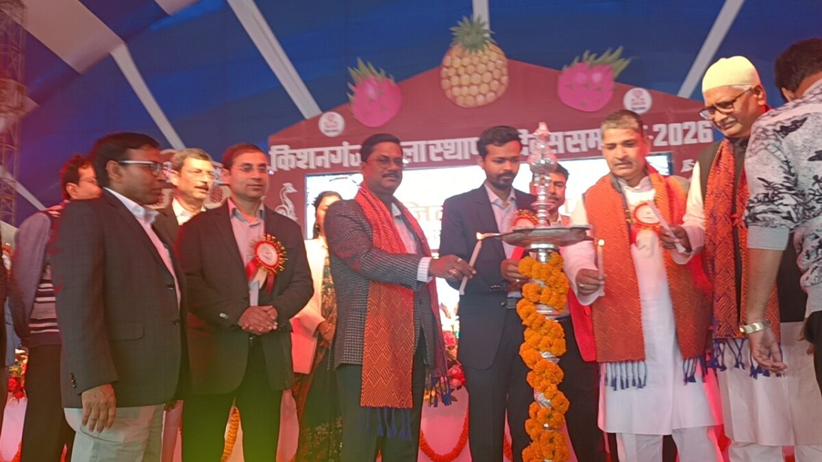 किशनगंज जिला का 36 वां जिला स्थापना दिवस को लेकर शहर के खगड़ा अशफाक उल्लाह खां स्टेडियम में संस्कृति कार्यक्रम का आयोजन किया गया. जिसका विधिवत उद्घाटन सांसद मोहम्मद जावेद आजाद, विधायक कमरूल होदा, डीएम विशाल राज, विधायक कमरुल होदा, नगर परिषद अध्यक्ष इंद्रदेव पासवान, अनुमंडल पदाधिकारी अंकित कुमार एवं अधिकारियों के द्वारा दीप प्रज्वलित साथ ही गुब्बारे उड़ाकर कर कार्यक्रम का विधिवत शुभारंभ किया गया. इस दौरान जिला पदाधिकारी विशाल राज के द्वारा कार्यक्रम स्थल पर लगे विभिन्न स्टॉल का निरीक्षण किया गया. जिला स्थापना दिवस के उपलक्ष पर स्कूली बच्चों द्वारा कई प्रकार के नित्य, गान, नाटकीय प्रस्तुत किया गया.इस मौके पर डीएम विशाल राज ने कहा कि किशनगंज जिला प्रगति की पथ पर लगातार अग्रसर है. हमें अपनी गंगा-जमुनी तहजीब को अक्षुण्ण रखते हुए विकास के उद्देश्य को प्राप्त करना है. वहीं सांसद डॉक्टर जावेद आजाद ने कहा कि किशनगंज को जिला बनाने में कई लोगों की भूमिका अहम थीं. उन्हें कभी नहीं भूलना चाहिए. सांसद ने कहा कि यहां के लोग मिलजुलकर रहते है. यहां की भाईचारगी शुरू से ही मिशाल है. कांग्रेस विधायक कमरूल होदा ने कहा कि किशनगंज जिले के लोग आपस में मिल जुलकर रहते है. यहां विकास की असीम संभावनाएं मौजूद है.