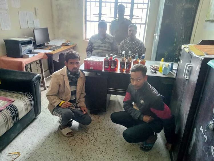 किशनगंज.किशनगंज उत्पाद विभाग के द्वारा लगातार जिले में शराब पीने व शराब तस्करी के विरुद्ध जांच अभियान चलाया जा रहा है. वही उत्पाद विभाग की टीम के द्वारा किशनगंज जिले के रामपुर चेक पोस्ट पर उत्पाद विभाग के सहायक अवर निरीक्षक अमर कुमार प्रसाद और सहायक अवर निरीक्षक सतीश कुमार अपने दलबल के साथ जांच अभियान चलाया. इस दौरान गुप्त सूचना के आधार पर दो युवक को रोक कर उसकी तलाशी ली गई. तलाशी के दौरान 7.425 लीटर विदेशी शराब बरामद किया गया. साथ ही दोनों युवक को गिरफ्तार कर लिया गया. गिरफ्तार युवक में विकास महतो और दीपक कुमार मंडल डे-मार्केट छेदिया बगान निवासी शामिल है. गिरफ्तार तस्कर को मेडिकल जांच के उपरांत न्यायिक हिरासत में जेल भेज दिया गया.