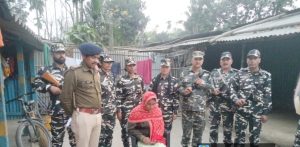 गलगलिया. गुप्त सूचना के आधार पर शनिवार को भारत – नेपाल सीमा पर तैनात 41 बटालियन एसएसबी भातगांव बीओपी की विशेष गश्ती दल और गलगलिया थाना की पुलिस के संयुक्त कारवाई में 116.6 ग्राम ब्राउन शुगर 13800 भारतीय रुपए 8225 नेपाली नोट एक महिला तस्कर को गिरफ्तार किया गया. यह कार्रवाई गलगलिया वार्ड संख्या 02 तोड़ीपट्टी में एक महिला के घर पर गई है एसएसबी और गलगलिया पुलिस की विशेष दल ने त्वरित कार्रवाई करते हुए एक महिला तस्कर को गिरफ्तार किया है. उसके पास 116.6 ग्राम ब्राउन शुगर बरामद किया गया है.हिरासत में लिए महिला तस्कर का नाम गुड़िया उर्फ लंगड़ी उर्फ सुनीता देवी पति राम सेवक साकिन तोड़ीपट्टी पो व थाना गलगलिया जिला किशनगंज निवासी है. इस कार्रवाई में 41 वीं वाहिनी भातगांव बीओपी तथा गलगलिया थाना की पुलिस ने पूछताछ में तस्कर ने बताया कि मादक पदार्थ को भारत के अंदर ही अवैध रूप से सप्लाई करने के फिराक में थी. इस संबंध में गलगलिया थानाध्यक्ष राकेश कुमार ने बताया कि महिला तस्कर के विरुद्ध एनडीपीएस एक्ट के तहत मामला दर्ज कर लिया गया है. इस कार्रवाई में गलगलिया थानाध्यक्ष राकेश कुमार, अपर थानाध्यक्ष मन्नू कुमारी, भूषण झा ,भातगांव एसएसबी के जवान मौजूद थे.