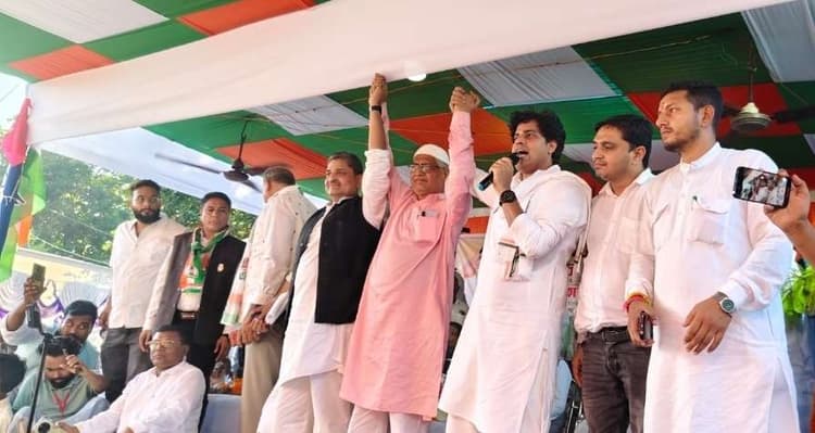 पहाड़कट्टा. कांग्रेस राज्यसभा सांसद और मशहूर शायर इमरान प्रतापगढ़ी ने बुधवार को पोठिया के कर्बला मैदान में महागठबंधन के प्रत्याशी मो कमरुल हुदा के समर्थन में जनसभा को संबोधित किया. इस मौके पर उन्होंने अपने काव्य और तीखे राजनीतिक अंदाज में भाजपा और एआईएमआईएम पर जमकर निशाना साधा. उन्होंने चिर-परिचित अंदाज में शायरी से सभा की शुरुआत की. कहा कि परिंदा है, शिकारी है, अदावत है, सियासत है, लेकिन इन सब चीजों पर मोहब्बत अब भी भारी है. उन्होंने ओवैसी पर तंज कसते हुए कहा कि कुछ ताकतें सीमांचल में आई है और कह रही है जो हमें वोट नहीं देगा वह फ़िरौन्न है. उन्होंने कहा कि कुछ बरसाती परिंदे लोगों को गालियां दे रहे है. कोचाधामन से हमारे उम्मीदवार को लंगड़ा घोड़ा कहा गया है. मुसलमान को फ़िरौन्न कहने से बड़ी गाली कोई नही. इमरान प्रतापगढ़ी ने कहा कि राहुल गांधी जनता के मुद्दों को लेकर सड़क से सदन तक लड़ाई लड़ रहे है. कन्याकुमारी में समुद्र किनारे खड़े होकर राहुल गांधी ने कहा था कि भाजपा देश में नफरत की किरासिन छिड़क रही है. इसी नफरत के खिलाफ उन्होंने कन्याकुमारी से कश्मीर तक चार हजार किलोमीटर की भारत जोड़ो यात्रा की जिससें उनके पैरों में छाले पड़े थे. कांग्रेस नेता इमरान प्रतापगढ़ी ने सभा में मौजूद लोगों को आश्वासन देते हुए कहा कि आगामी 14 नवंबर को बिहार में महागठबंधन की सरकार बनने जा रही है. इसलिए किशनगंज विधानसभा के मतदाता कांग्रेस उम्मीदवार कमरुल हुदा को वोट करें. उन्होंने कहा कि किशनगंज के एएमयू शाखा का मुद्दा हो या फिर सीमांचल के बदहाली का मुद्दा दोनों को संसद में उन्होंने उठाया है. वही सभा के दौरान मंच पर एमआईएम नेता गुलाम मुक़्तदा एवं पुर्व प्रमुख मो जाकिर हुसैन ने अपने दर्जनों समर्थकों के साथ कांग्रेस पार्टी की सदस्यता ग्रहण की. सभा मे मुख्य रूप से महागठबंधन प्रत्याशी मो कमरुल हुदा, किशनगंज सांसद डॉ.मो जावेद आजाद, मालदा सांसद ईशा खान चौधरी, राजस्थान विधायक रफीक खान, जिलाध्यक्ष इमाम अली चिंटू, कांग्रेस नेता पिंटू चौधरी, वरिष्ठ नेता मो जहांगीर आलम, प्रखंड अध्यक्ष इनामुल हक, सीपीआईएम जिला सचिव कॉ अबुल कलाम आजाद, मो इमरान आदिल, मो आबिद हुसैन सहित अन्य मौजूद थे.