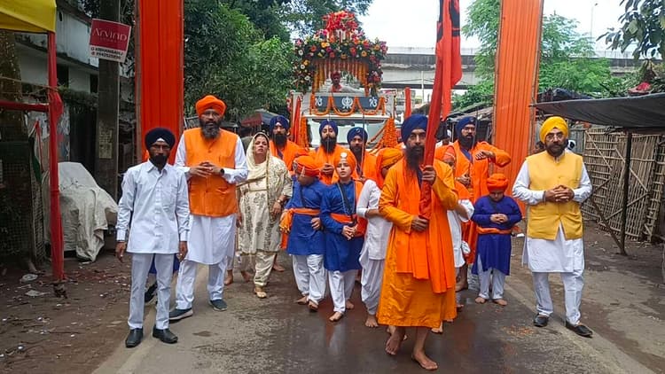 किशनगंज. शहर के महावीर मार्ग स्थित गुरुद्वारा से गुरु नानक देव की जयंती व 556 वां प्रकाश पर्व पर सिख समुदाय के श्रद्धालुओं द्वारा शोभायात्रा सह भव्य नगर कीर्तन निकाला गया. पंच प्यारे नगर कीर्तन की अगुवाई कर रहे थे.
