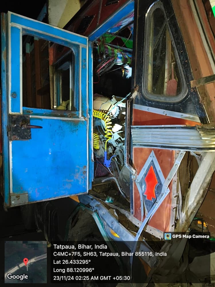 ठाकुरगंज. एनएच 327 ई पर ठाकुरगंज बाईपास के पास शनिवार सुबह दो बजे सड़क किनारे खड़े ट्रक में पीछे से आ रहे ट्रक के टकराने से चालक की मौत हो गई है. चालक की पहचान दानिश रजा (25 वर्ष) कन्हैयाबाडी थाना कोचाधामन के रूप में हुई है. घटना चौहान होटल के पास हुई है. वहीं घटना के बाद कुर्लीकोट पुलिस ने शव को पोस्टमार्टम के बाद परिजनों के हवाले कर दिया. घटना क्रम के बाबत बताया जाता है कि चौहान ढाबा के सामने स्टील चदरा लदा एक ट्रक खड़ा था. पौआखाली से सिलीगुड़ी की ओर जा रहा खाली ट्रक अचानक पीछे से खड़े ट्रक से टकरा गया.जिसके कारण पीछे वाले ट्रक का सामने वाला का पूरा हिस्सा खड़े ट्रक के पिछले हिस्से से टकरा कर पूरी तरह क्षतिग्रस्त हो गया. स्टील के चदरे चालक दानिश रजा के शरीर में घूसने व माथे पर गंभीर चोट लगने के कारण उसकी मौत हो गई. दुर्घटना की सूचना मिलते ही कुर्लीकोट थानाध्यक्ष सिद्दार्थ कुमार दलबल के साथ मौके पर पहुंचकर बचाव कार्य में लग गए. दूसरी ओर पौआखाली नप अध्यक्ष प्रतिनिधि अहमद हुसैन उर्फ लल्लू मुखिया भी मौके पर पहुंचकर पुलिस के सहयोग से जेसीबी के सहारे शव को ट्रक से बाहर निकाला. लेकिन चालक के सहयोगी को दुर्घटना में हल्की चोटे आयी है.