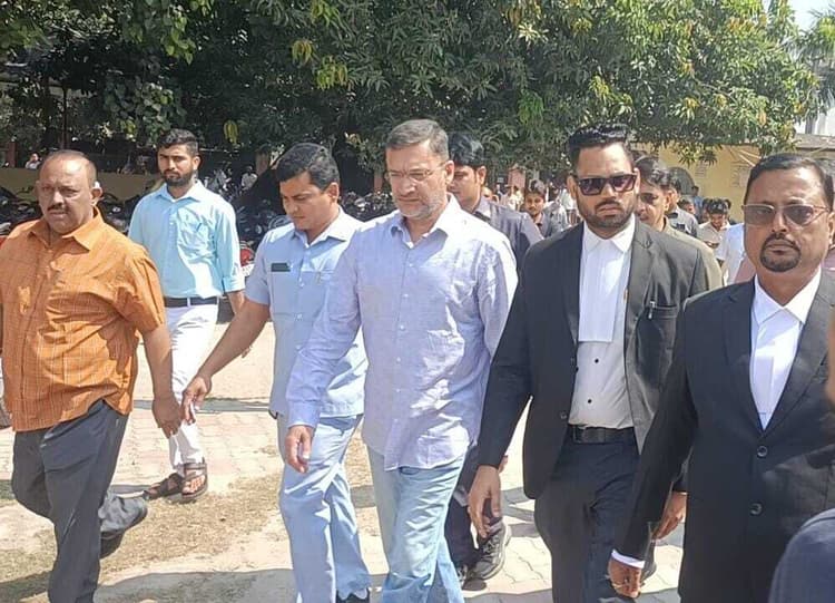 फोटो 4 न्यायालय में पेश होने जाते एआईएमआईएम नेता अकबरूद्दीन ओवैसी व अधिवक्तागण प्रतिनिधि, किशनगंज एआईएमआईएम सुप्रीमो असदुद्दीन ओवैसी के छोटे भाई और पार्टी से विधायक अकबरुद्दीन ओवैसी गुरुवार को किशनगंज व्यवहार न्यायालय में पहुंचे और एसीजीएम फर्स्ट सुश्री शारदा के कोर्ट में पेश हुए. दरअसल 2015 में अकबरुद्दीन ओवैसी ने जिले के कोचाधामन प्रखंड अंतर्गत सोंथा हाई स्कूल के मैदान में चुनावी जनसभा को संबोधित करते हुए प्रधानमंत्री नरेंद्र मोदी के खिलाफ आपत्ति जनक बयान दिया था जिसके बाद उनके ऊपर कोचाधामन थाना में तत्कालीन बीडीओ के द्वारा मामला दर्ज करवाया गया था. विधायक अकबरुद्दीन ओवैसी इस मामले में जमानत पर थे और आज मामले में उनका बयान दर्ज किया गया है. मौके पर मौजूद अकबरउद्दीन ओवैसी के अधिवक्ता ओम कुमार ने बताया कि जीआर 1680/2015 में अकबरुद्दीन ओवैसी पेश हुए और उनके द्वारा अपना बयान दर्ज करवाया गया है. श्री कुमार ने बताया कि 4 अक्टूबर 2015 को उनके खिलाफ अलग- अलग धाराओं में मुकदमा दर्ज करवाया गया था. वही बार एसोसिएशन के अध्यक्ष शिशिर कुमार दास ने कहा कि धारा 313 के तहत अकबरुद्दीन ओवैसी का बयान दर्ज किया गया है. मामले में जल्द ही कोर्ट द्वारा सुनवाई के उपरांत फैसला सुनाया जायेगा. उन्होंने कहा कि उम्मीद है कि आगे इस तरह की बयान बाजी करके किशनगंज जिले में जो गंगा जामुनी तहजीब कायम है उसे वो ठेस पहुंचाने का काम नहीं करेंगे. हालाकि इस संबंध में मीडिया वालों ने अकबरुद्दीन ओवैसी से बात करने की कोशिश की लेकिन वो कन्नी काट कर निकल गए.