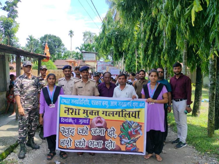 गलगलिया. नशा मुक्त गलगलिया अभियान के तहत सोमवार को गलगलिया में मादक पदार्थों व नशे के विरुद्ध जन जागरूकता रैली निकाली गई. युवा मंच के द्वारा आयोजित इस नशा मुक्त जन-जागरूकता अभियान में गलगलिया थाने की पुलिस एसएसबी के 41 वीं बटालियन के भातगांव बीओपी के जवान सहित स्कूली बच्चोंके सहयोग से सीमावर्ती क्षेत्र के घोष पारा, गलगलिया बाजार, बाजार चौक, पुराना बस स्टैंड, सहनी टोला, दरभंगिया टोला आदि क्षेत्रों में निकाली गई रैली में बच्चों से लेकर स्थानीय पत्रकार, गलगलिया पुलिस एसएसबी जवान तक की भागीदारी देखी गई. इस मौके पर गलगलिया उच्च विद्यालय के प्रधानाध्यापक अर्जुन पासवान, गलगलिया थाना के एसआई भूषण झा, पीएसआई वेद प्रकाश, पुलिस जवान, एसएसबी भातगांव बीओपी के पुरुष व महिला जवान, पत्रकार दीना नाथ शर्मा, विवेक चौधरी, प्रदीप शर्मा, दिलशाद रहमान, शिक्षक मनोज सिंह, अमरनाथ राय, धनंजय राय, राकेश राय, विकाश कुमार, बिंदु अग्रवाल, रचना चौधरी, दीपा कुमारी, सहित सैकड़ों की संख्या में स्कूली बच्चे आदि मौजूद थे.