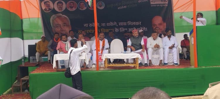 ठाकुरगंज.खराब मौसम के कारण गुरुवार को झारखंड के पूर्व मुख्यमंत्री बाबूलाल मरांडी जनसभा के लिए ठाकुरगंज चुरली मेला मैदान नहीं पहुंच सके. जिसके कारण उन्होंने मोबाइल से जनसभा को संबोधित किया. श्री मरांडी जदयू प्रत्याशी गोपाल अग्रवाल के पक्ष में चुनाव प्रचार करने के लिए आने वाले थे. चुरली मेला मैदान में भारी वर्षा के बाबजूद बड़ी संख्या में लोग जुटे थे. लेकिन बाबूलाल मरांडी के नहीं आने से लोगों को निराशा हुई. इस दौरान मोबाइल से जनसभा को संबोधित करते हुए झारखंड के पूर्व मुख्यमंत्री बाबूलाल मरांडी ने विपक्ष पर जमकर निशाना साधा. उन्होंने पीएम नरेंद्र मोदी और सीएम नीतीश कुमार के कार्यों को गिनाया. इस दौरान उन्होंने केंद्र की मोदी सरकार और नीतीश कुमार की राज्य सरकार की उपलब्धियां गिनाई. इस दौरान उन्होंने लोगो से 19 साल पहले वाले बिहार को याद करने को कहा और कहा कि याद कीजिये बिहार की कैसी बदहाल तस्वीर थी. कौन रहना और कौन आना चाहता था बिहार. बिहार में जब नीतीश कुमार की सरकार बनी और एनडीए का साथ मिला. तब बिहार की पूरी तस्वीर ही बदल गई. हर एक गांव तक सड़क बनी, बिजली और हर घर नल का जल पहुंचा . आज हमारे बच्चे स्कूल जा रहे हैं. बच्चों को स्कूल ड्रेस, लड़कियों को साइकिल, स्कॉलरशिप मिला. आदिवासियों को सम्मान मिला. आज देश के सर्वोच्च संवैधानिक पद पर आदिवासी है. एनडीए ने आदिवासी महिला को राष्ट्रपति बनाया. आज बिहार विकास के मामले में तेज रफ्तार पकड़ चुका है. विपक्ष पर निशाना साधते हुए कहा कि मुझे तो ताज्जुब होता है ऐसे कुछ लोगों पर जो आज भी हाथ में लालटेन लेकर घूम रहे हैं. लेकिन बिहार के लोग 20 साल पहले वाले बिहार को भूले नहीं, जब चारों ओर जंगलराज कायम था. अपराध और अपराधियों का बोलबाला था. बहू बेटियां बाहर निकलने से डरती थी. आज वो खुलकर घूम रही हैं. केंद्र में नरेंद्र मोदी की सरकार है. बिहार के विकास को रफ्तार देने के लिए 2025 के चुनाव में फिर से सीएम नीतीश कुमार के नेतृत्व वाली एनडीए की सरकार बनाने की जरूर है. इस दौरान जदयू प्रत्याशी गोपाल अग्रवाल ने भी सभा को संबोधित किया वही इस दौरान पूर्व विधायक सह उर्दू परामर्श धात्री के अध्यक्ष नौशाद आलम,किशनगंज नगर परिषद के अध्यक्ष इंद्रदेव पासवान,भाजपा नेता कौशल किशोर यादव,बिजली सिंह,अरुण सिंह,अजय राय,जदयू नेता नजरूल,मुकेश हेंब्रम,सुबोध टुडू, आदि नेताओं ने भी सभा को संबोधित किया .