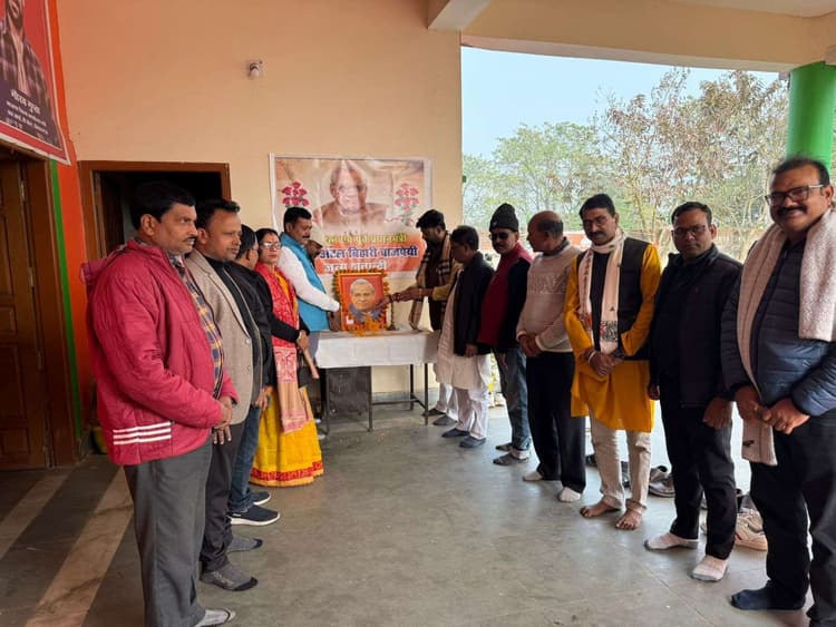 किशनगंज भारत रत्न पूर्व प्रधानमंत्री अटल बिहारी वाजपेयी की जन्म शताब्दी के उपलक्ष में भाजपा ने कई कार्यक्रम किए. प्रत्येक प्रखंडों में उनके तैल चित्र पर पुष्पांजलि अर्पित की गयी तथा उनके जीवन के प्रेरक प्रसंगों की चर्चा की गयी. साथ ही जिला मुख्यालय में तुलसी पौधे को लगाकर आसपास के क्षेत्र में वितरण भी किया गया. नगर मंडल के द्वारा जयंती के उपलक्ष्य में किताब कॉपी पेंसिल और चॉकलेट नगर अध्यक्ष अरविंद मंडल के नेतृत्व में बांटा गया. जिला मुख्यालय में एक बैठक आयोजित की गई. जिसमें भाजपा जिलाध्यक्ष गोपाल मोहन सिंह, जिला बीस सूत्री उपाध्यक्ष सुशांत गोप की उपस्थिति में चार विधानसभा में सम्मेलन हेतु 28, 29, 30 दिसंबर को सूचीबद्ध की गई. वहीं 30 दिसंबर को जिला मुख्यालय किशनगंज में वन पर्यावरण एवं सहकारिता मंत्री प्रमोद चंद्रवंशी की उपस्थित में इस कार्यक्रम का समापन होगा. बैठक में मुख्य रूप से निवर्तमान अध्यक्ष सह जिला बीस सूत्री उपाध्यक्ष सुशांत गोप, मनीष सिंह, जिला महामंत्री पंकज कुमार, उपाध्याय ज्योति कुमार सोनू, महिला मोर्चा सोनी देवी, किसान मोर्चा अध्यक्ष शिव नारायण यादव, एससी मोर्चा अध्यक्ष संजय पासवान, नगर अध्यक्ष अरविंद मंडल, महामंत्री कमलेश शर्मा, संजय उपाध्याय हरीकिशोर, शंकर दास सहित दर्जनों कार्यकर्ता उपस्थित थे.