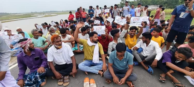 बहादुरगंज. निशंद्रा-असुरा घाट पुल निर्माण संघर्ष समिति के बैनर तले मंगलवार को सैकड़ों की संख्या में ग्रामीणों ने मौलाना असरारुल हक़ एक्सप्रेस वे में असुरा-निसन्दरा घाट पर टायर जलाकर विरोध प्रदर्शन किया एवं व्यवस्था के विरोध में जमकर नारेबाजी की. आक्रोशित ग्रामीणों का कहना था कि पुल का निर्माण प्रस्तावित लोकेशन असुरा-निसन्दरा घाट के बीच स्थित है. लेकिन बिहार पुल निर्माण निगम लिमिटेड के अधिकारियों ने मनमाना रवैया दिखाते हुए पुल का एलाइनमेंट या लोकेशन को प्रस्तावित स्थल से तकरीबन डेढ़ किलोमीटर डाउन पश्चिम में लेआउट कर दिया है, जो जनहित में कदापि उचित नहीं है. जिला परिषद प्रतिनिधि इमरान आलम ने प्रस्तावित लोकेशन की जगह दूसरे लोकेशन पर कार्य को अनुचित करार दिया एवं कहा कि पुल निर्माण का उद्देश्य बहादुरगंज प्रखंड के पश्चिमी क्षेत्र में स्थित निसन्दरा पंचायत, दुर्गापुर बनगामा पंचायत सहित टेढ़ागछ प्रखंड के कई पंचायत के लोगों को मुख्य धारा से जोड़ना था. जिससे लोग बाढ़ एवं बरसात के मौसम में भी सीधे बिशनपुर बाजार एवं बहादुरगंज मुख्यालय या फिट जिला मुख्यालय तक आसानी से पहुंच सके. इस बीच प्रस्तावित लोकेशन के बजाय दूसरी जगह लेआउट करना कहीं से न्यायोचित नहीं कहा जा सकता. धरना प्रदर्शन में सरपंच प्रतिनिधि बाबर अली, असगर इमाम, शहजाद आलम, पैक्स अध्यक्ष अमेरुल हक़, मुनाजिर आलम जुम्मन , दिलनवाज आलम, एजाज हसन, तारिक अनवर, नाज़िश अख़्तर, परवेज आलम, विनोद कुमार, रणजीत कुमार, समिति सदस्य मुनाजिर आलम, हाफिज निसार आलम, इरशाद आलम सहित सैकड़ों ग्रामीण उपस्थित थे.